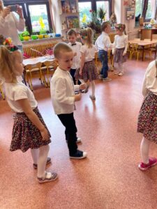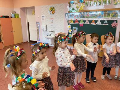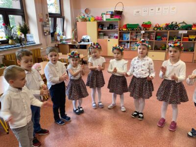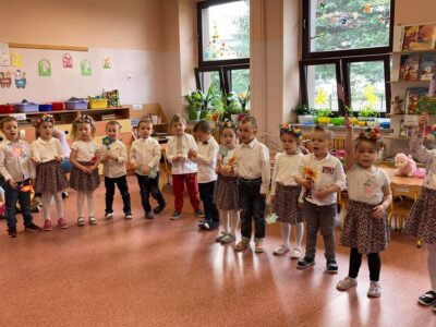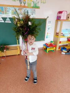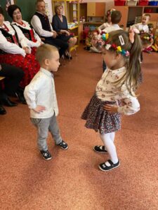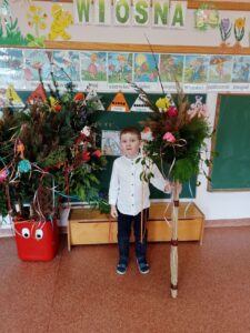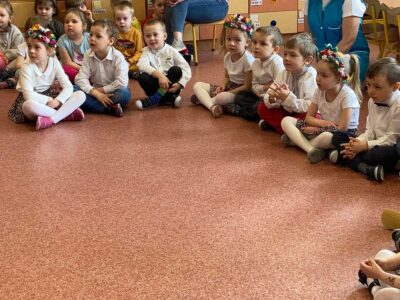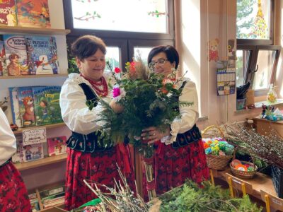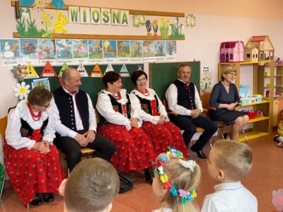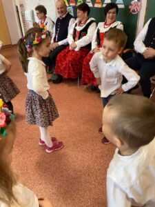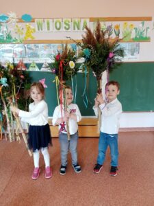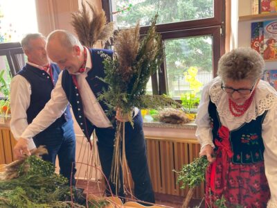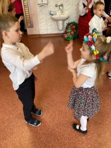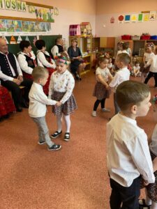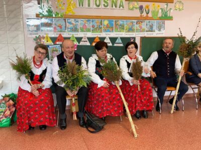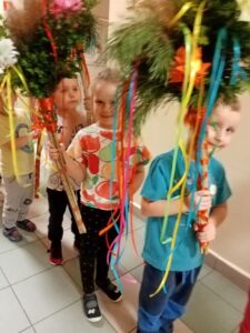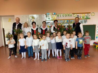 Dzieci przygotowały dla gości krótki występ artystyczny, zaśpiewały piosenki oraz zatańczyły taniec ludowy. W czasie wizyty goście przedstawili dzieciom skąd wzięła się tradycja tworzenia palm, co symbolizują palmy, z jakich roślin wykonuje się je na południu Polski oraz jakich ozdób najczęściej się używa. Wszyscy mogli się przekonać, że zrobienie palmy jest dosyć trudnym i czasochłonnym zadaniem, jednak efekt współpracy okazał się niesamowity.