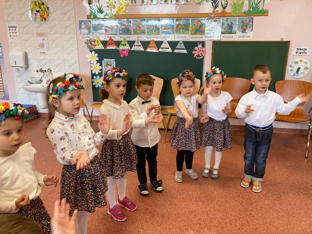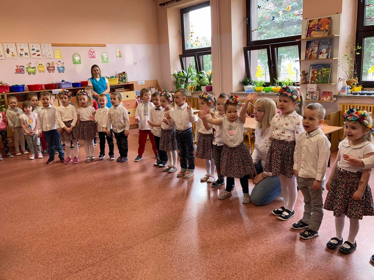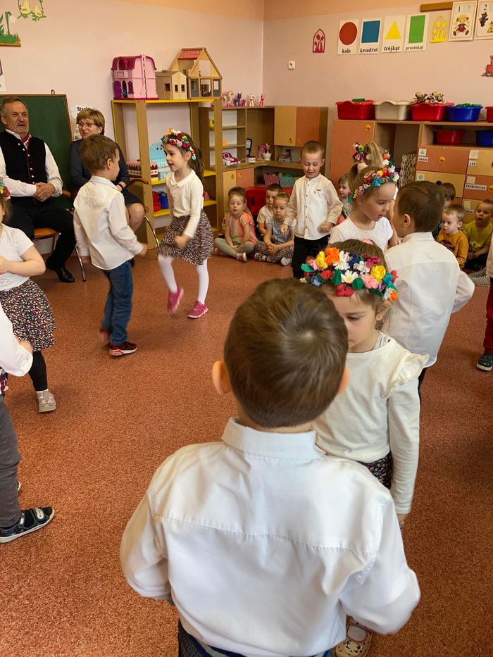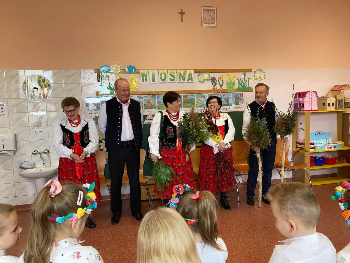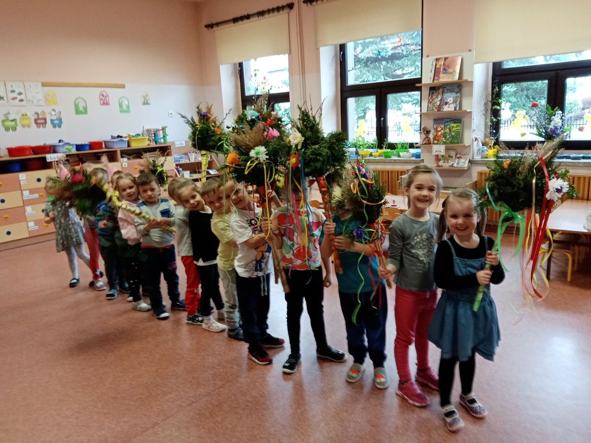 Dzieci przygotowały dla gości krótki występ artystyczny, zaśpiewały piosenki oraz zatańczyły taniec ludowy. W czasie wizyty goście przedstawili dzieciom skąd wzięła się tradycja tworzenia palm, co symbolizują palmy, z jakich roślin wykonuje się je na południu Polski oraz jakich ozdób najczęściej się używa. Wszyscy mogli się przekonać, że zrobienie palmy jest dosyć trudnym i czasochłonnym zadaniem, jednak efekt współpracy okazał się niesamowity.
