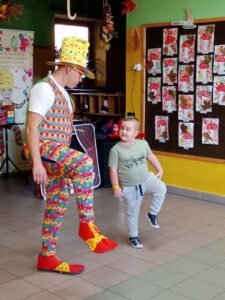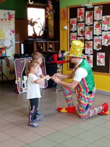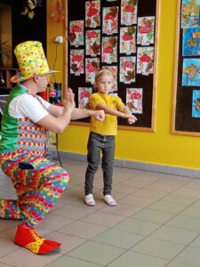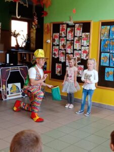 29. 10. 2021r. przedszkolaki miały okazję spotkać się z niezwykłym gościem – Panem Humorkiem. Zaprezentował on dzieciom bardzo atrakcyjny, pełen humoru, pokaz czarów i magii, do którego angażował także dzieci, a nawet panie. Swoim występem oczarował wszystkie przedszkolaki i nie tylko… Na ich buziach malowało się zdziwienie, zaskoczenie, entuzjazm, radość, a przede wszystkim śmiech. Mamy nadzieję, że to nie była ostatnia wizyta tego miłego gościa w naszym przedszkolu.
