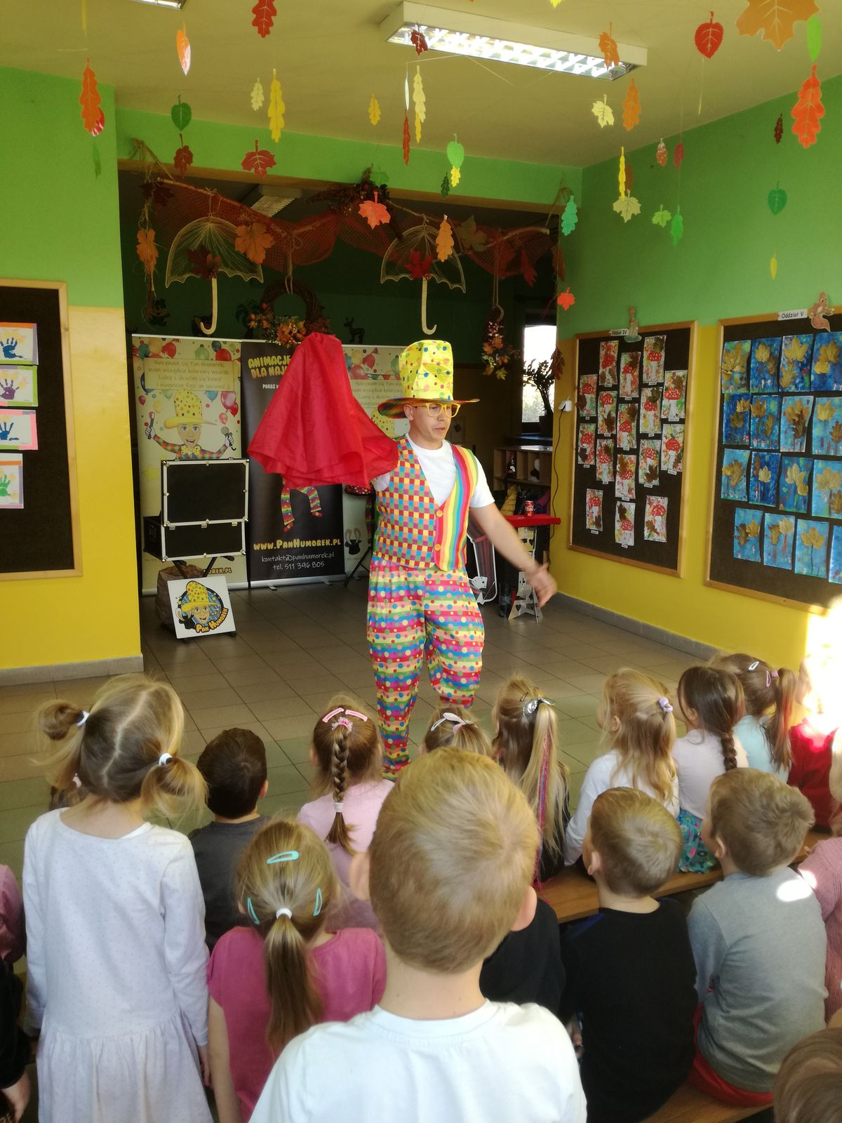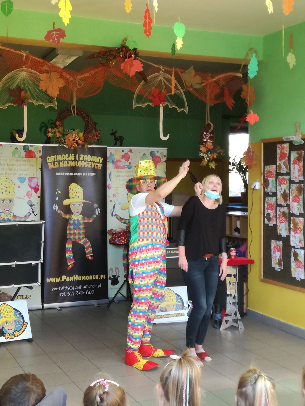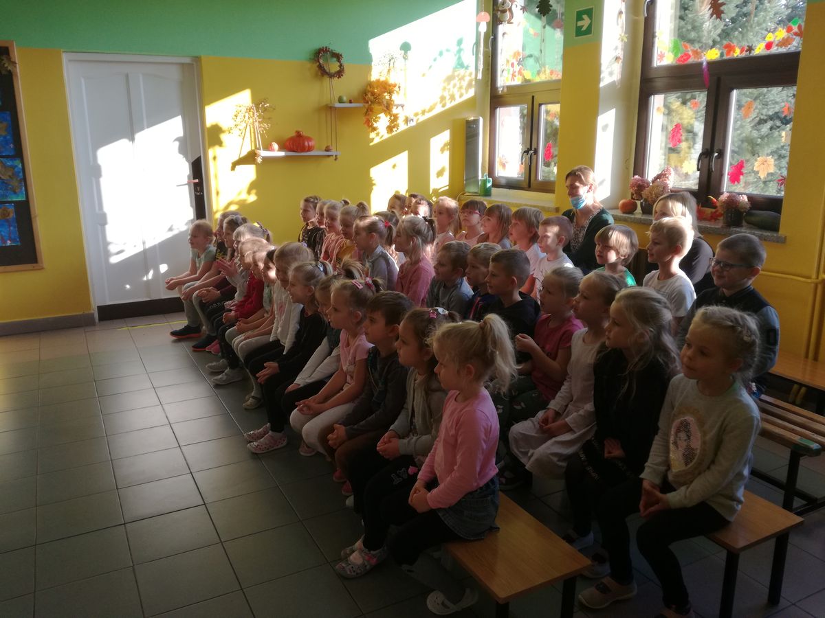 29. 10. 2021r. przedszkolaki miały okazję spotkać się z niezwykłym gościem – Panem Humorkiem. Zaprezentował on dzieciom bardzo atrakcyjny, pełen humoru, pokaz czarów i magii, do którego angażował także dzieci, a nawet panie. Swoim występem oczarował wszystkie przedszkolaki i nie tylko… Na ich buziach malowało się zdziwienie, zaskoczenie, entuzjazm, radość, a przede wszystkim śmiech. Mamy nadzieję, że to nie była ostatnia wizyta tego miłego gościa w naszym przedszkolu.