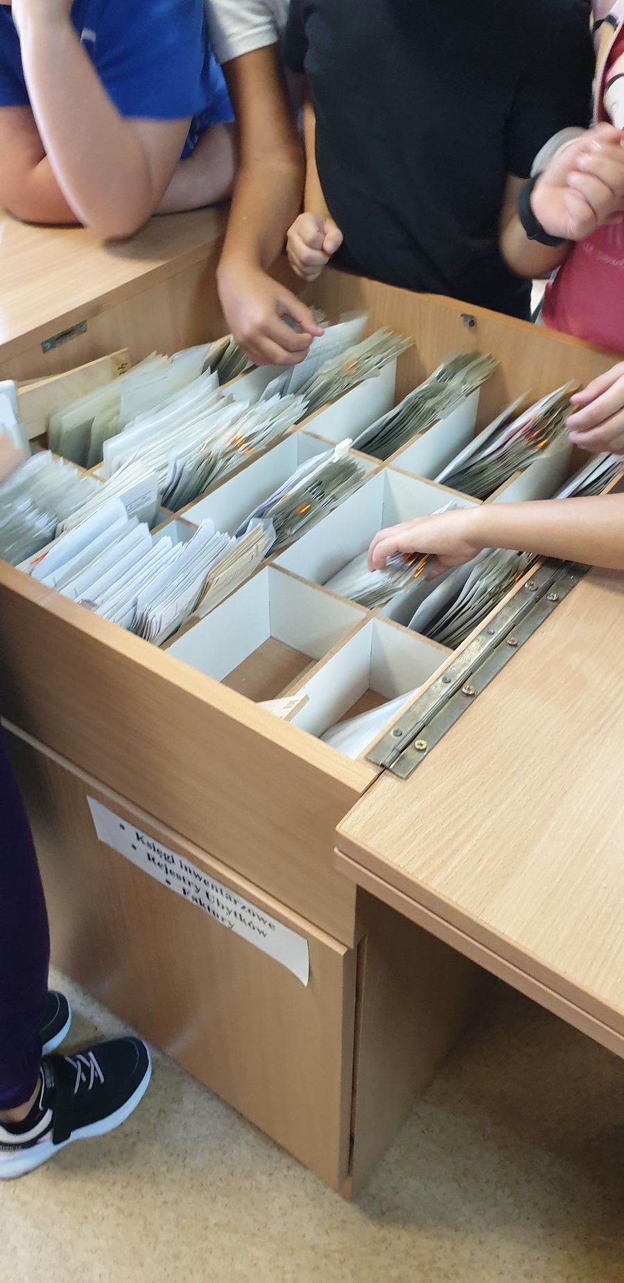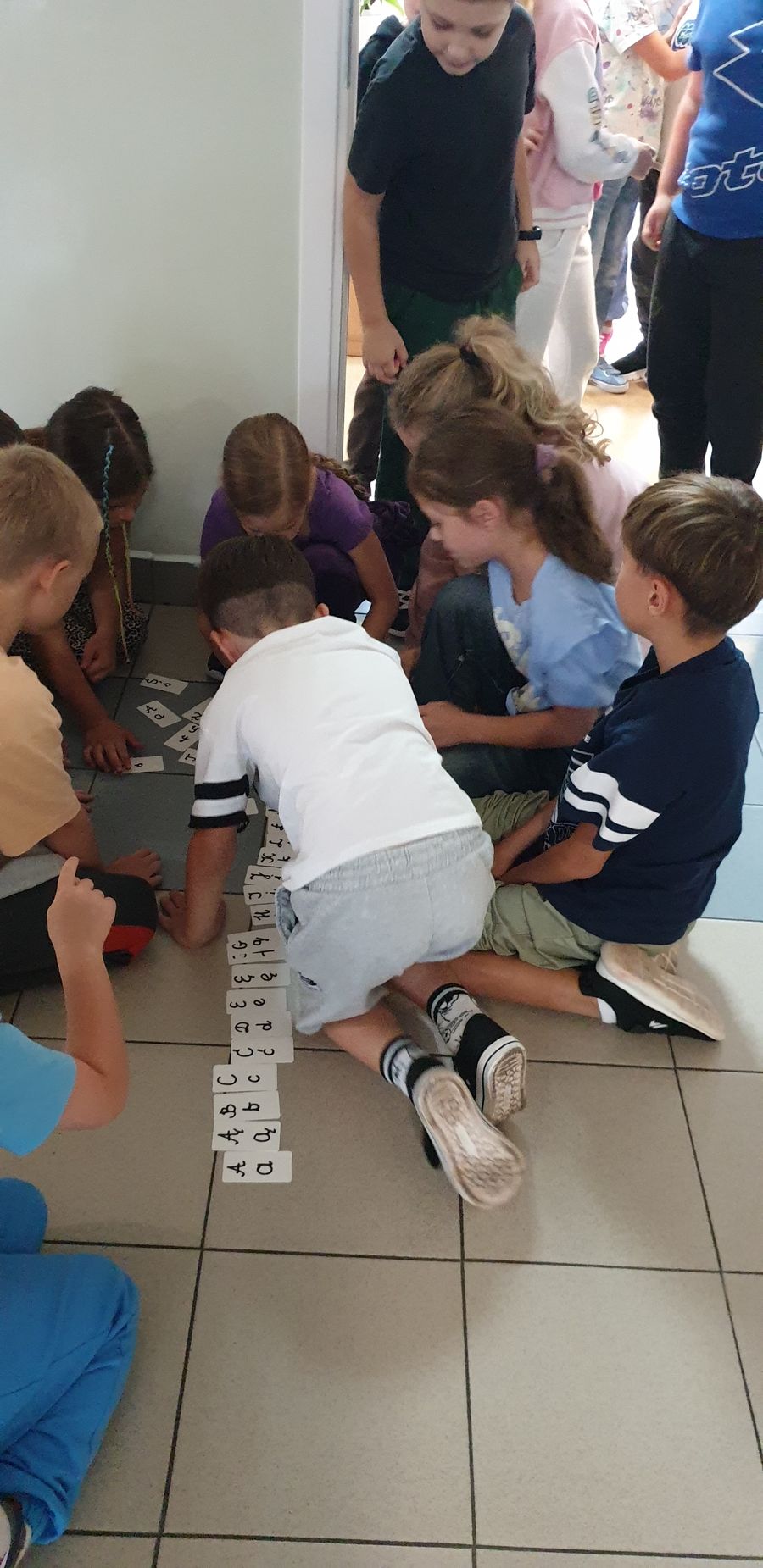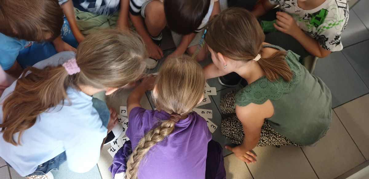 Z tym pytaniem przybyli do biblioteki uczniowie klasy 2 c. Poszukiwania odpowiedzi na to pytanie rozpoczęli od przypomnienia sobie alfabetu. Podzieleni na grupy układali kolejno kartoniki z literami. Potem zastanawiali się, czy w bibliotece ten alfabet jest koniecznie potrzebny. W kartach czytelniczych zauważyli, że nazwiska uczniów są ułożone kolejno wg alfabetu. Ale znowu pojawiło się pytanie: co wtedy, gdy kilka nazwisk zaczyna się na tę samą literę? Poradzili sobie wybornie – wiedzieli, że trzeba sprawdzić kolejną, a jeśli trzeba to jeszcze następną. Sprawdzali również słowniki – małe ilustrowane słowniki ortograficzne dla dzieci. Jednogłośnie wykrzyczeli, że tam też potrzebny jest alfabet! Na koniec wizyty ustaliśmy, że już wkrótce odkryjemy tajemnice alfabetu!