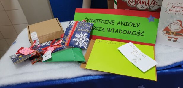 Samorząd uczniowski i szkolna biblioteka zorganizowali pocztę świąteczną. Każdego dnia można wrzucać do skrzynki świąteczne i noworoczne życzenia dla przyjaciół, kolegów, nauczycieli naszej szkoły. Świąteczne Anioły każdego dnia dostarczają przesyłki do adresatów.