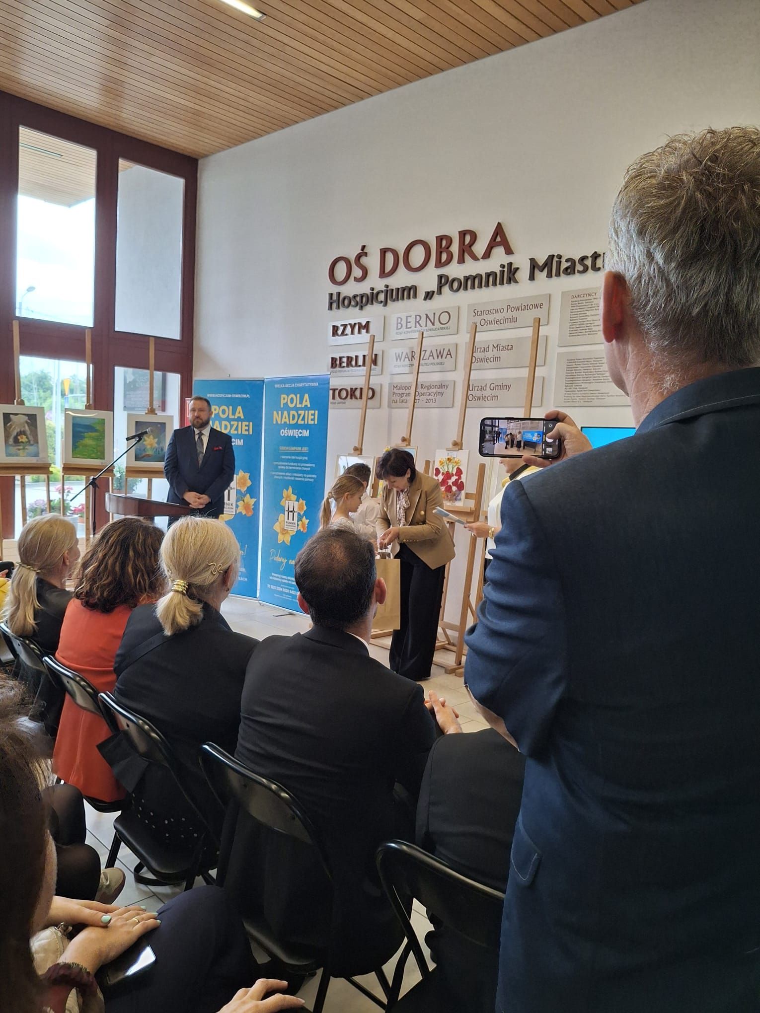 Nasza szkoła wzięła udział w tym przedsięwzięciu. W ramach wewnątrzszkolnych eliminacji wyłoniono najpiękniejsze prace plastyczne, które reprezentowały placówkę. Były to żonkile autorstwa: Igi Tlałki, Klaudii Brandys, Amelii Dubiel, Aleksandry Sznajder, Emilii Kolasy, Mai Michałek. W dniu 29 maja 2025 r. w siedzibie fundacji „Pomnik – Hospicjum Miastu Oświęcim” odbyło się podsumowanie akcji oraz konkursu. Z dumą przyjęliśmy wyniki, bowiem praca Igi Tlałki, uczennicy klasy 3 b, zdobyła III miejsce, natomiast dzieło Aleksandry Sznajder z klasy VII ai – wyróżnienie. Gratulujemy dziewczynom! Życzymy dalszych sukcesów, a także uczestnictwa w tak ważnych inicjatywach.