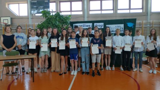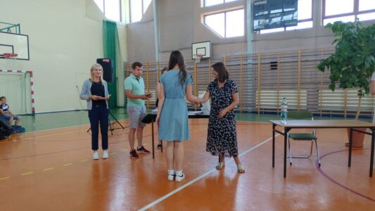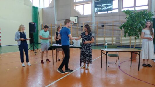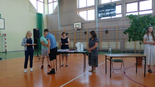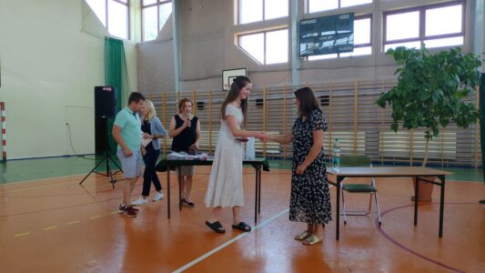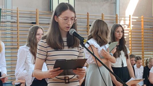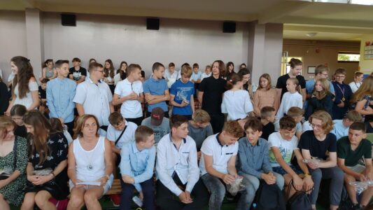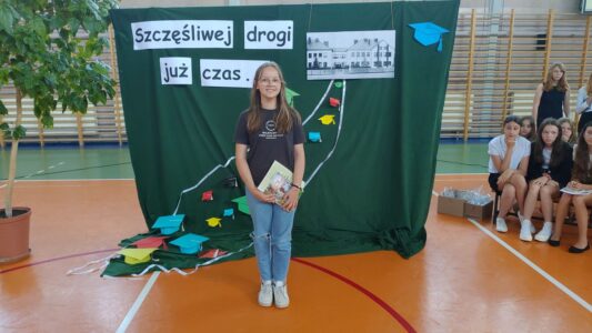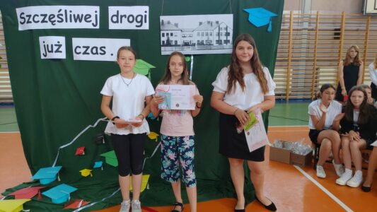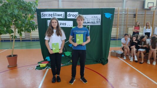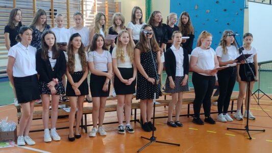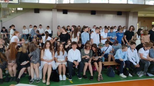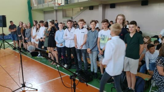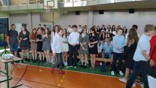 W dniu 23 czerwca 2022 r. klasy siódme pożegnały swoich starszych kolegów. Przypomnieli ich pierwsze chwile w szkole, pierwsze przyjaźnie, całe barwne szkolne życie. Ale dla ósmoklasistów wszystko w tej szkole było ju z ostatnie – sprawdziany i testy, wypad do kina i lekcje online, wyczekiwane wycieczki, ostatnia piątka i ostatnia jedynka. Ten szkolny czas już dla nich się skończył.