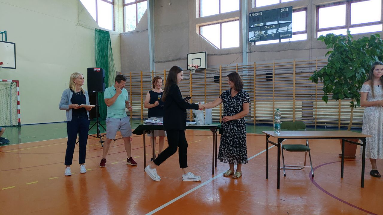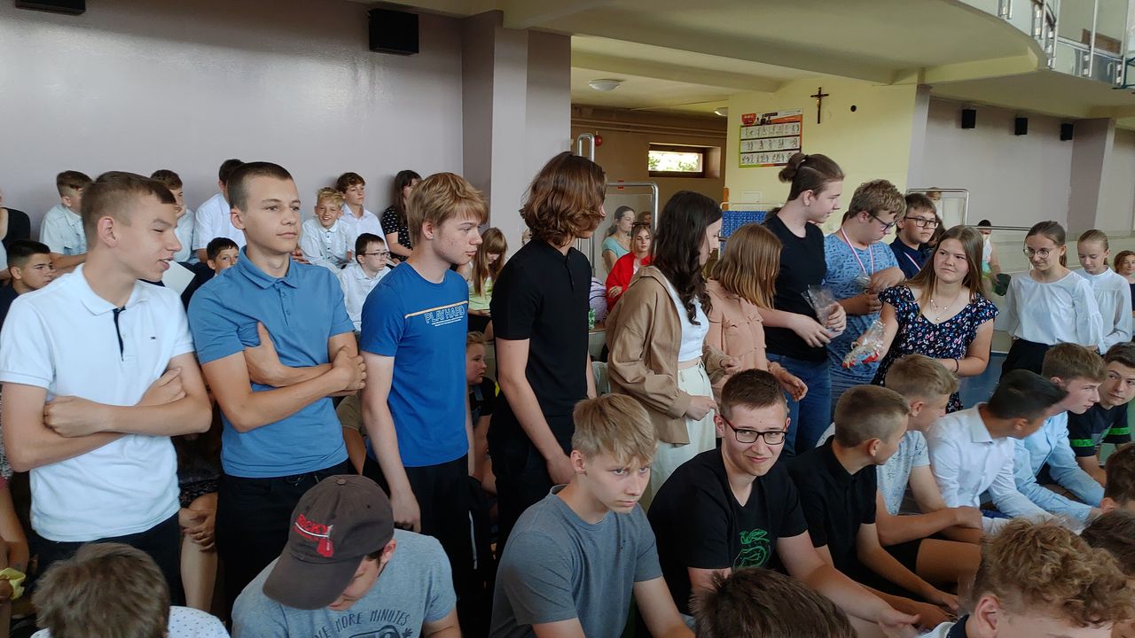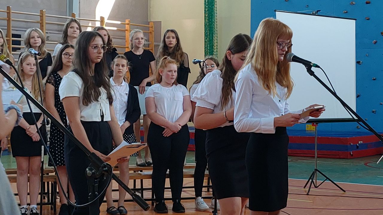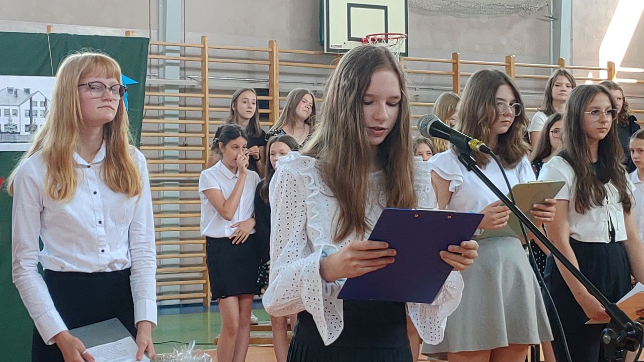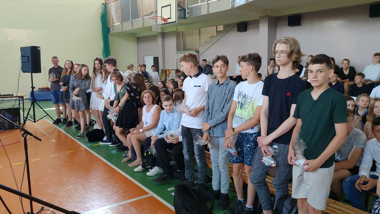 W dniu 23 czerwca 2022 r. klasy siódme pożegnały swoich starszych kolegów. Przypomnieli ich pierwsze chwile w szkole, pierwsze przyjaźnie, całe barwne szkolne życie. Ale dla ósmoklasistów wszystko w tej szkole było ju z ostatnie – sprawdziany i testy, wypad do kina i lekcje online, wyczekiwane wycieczki, ostatnia piątka i ostatnia jedynka. Ten szkolny czas już dla nich się skończył.