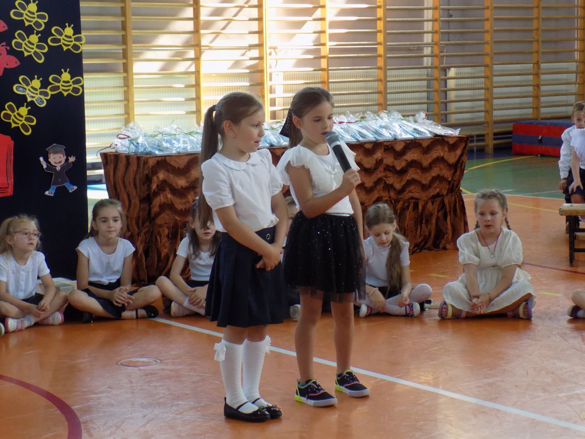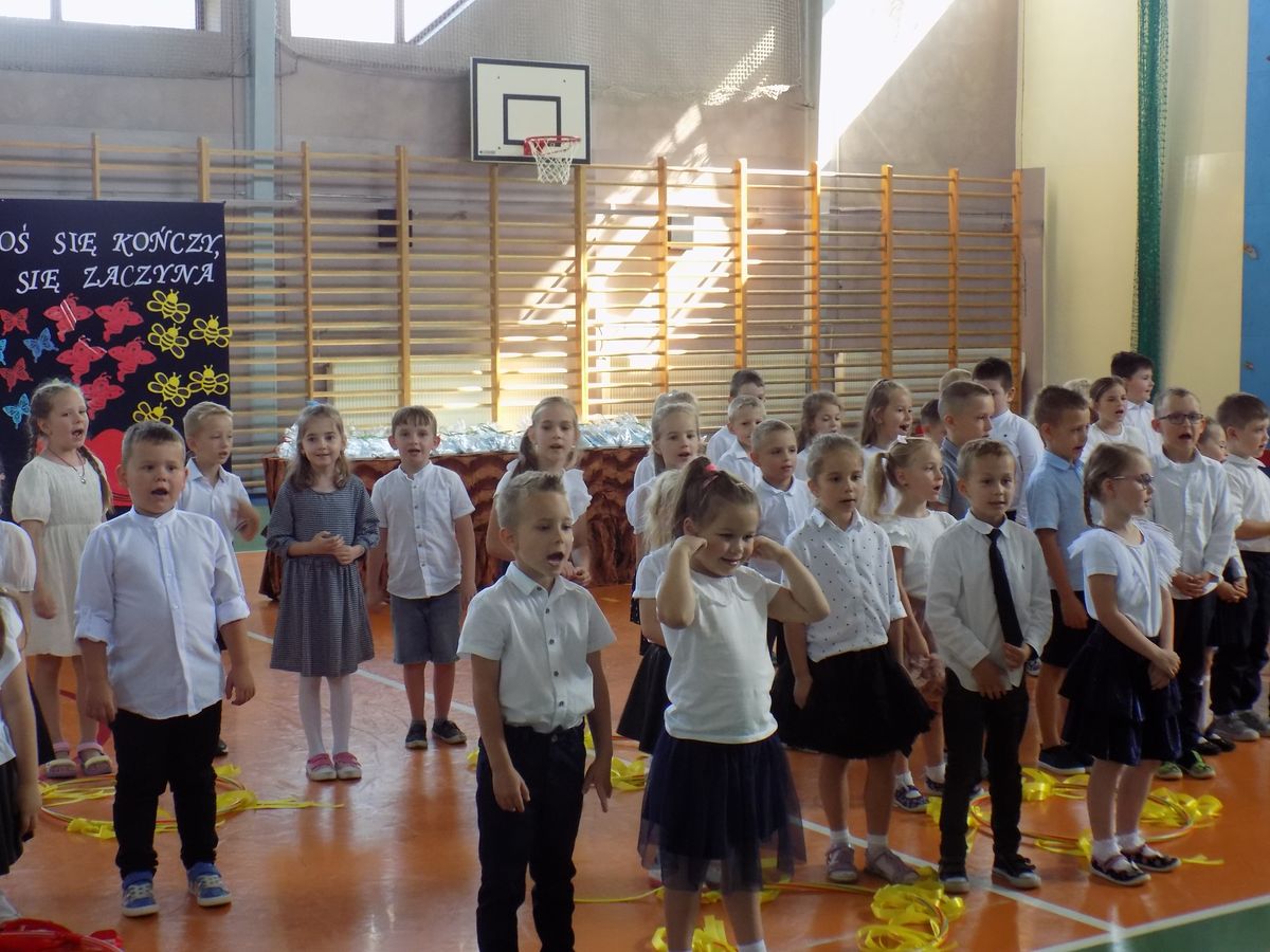 W tym dniu wszystkie zerówki odświętnie ubrane: wyrecytowały wiersze ze wspomnieniami przedszkolnych dni, zaśpiewały piosenki oraz zatańczyły piękny pożegnalny taniec. Młodsi koledzy życzyli im powodzenie na nowej szkolnej drodze.