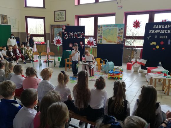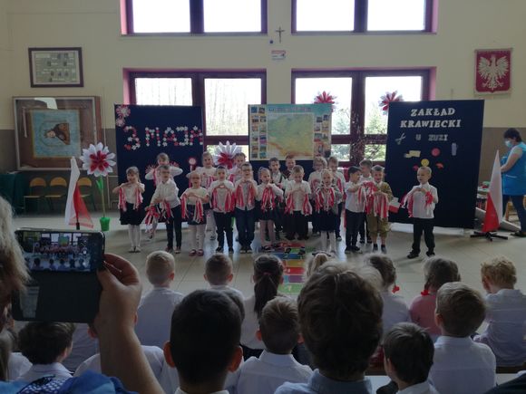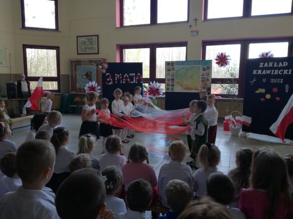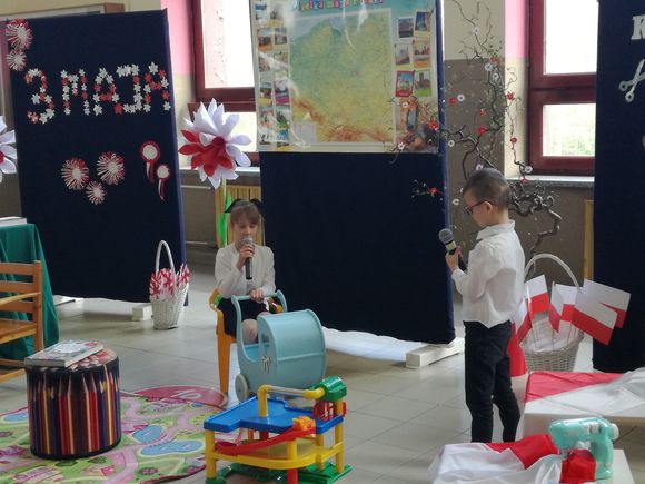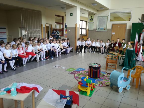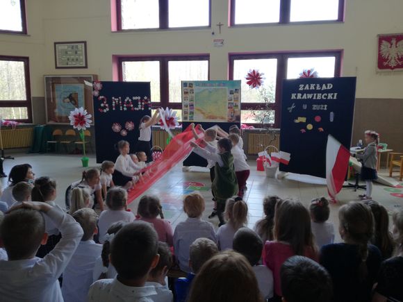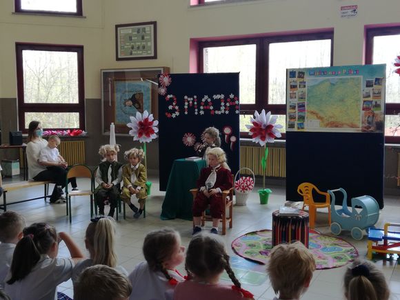Głównym celem uroczystości było upamiętnienie rocznicy uchwalenia Konstytucji regulującej ustrój prawny Rzeczypospolitej Obojga Narodów oraz rozwijanie poczucia przynależności narodowej u naszych „Małych Patriotów”. W tak ważnym dniu dzieci prezentowały się niezwykle uroczyście w galowych strojach. Podkreślając wagę naszych symboli narodowych: godła, flagi, hymnu oraz znaczenia ojczyzny w naszym życiu. Przedszkolaki z powagą i dumą zaprezentowały program patriotyczny o Polsce. Nie zabrakło tekstów literackich i pieśni o naszej Ojczyźnie. Upamiętniając rocznicę uchwalenia Konstytucji 3- ego Maja, wszyscy uczestnicy poetycko-patriotycznej akademii z wielką powagą zaśpiewali hymn polski „Mazurek Dąbrowskiego”. Pani dyrektor podkreślając wagę Konstytucji będącej zbiorem praw, gwarantujących praworządność i wolności obywatelskie, podziękowała nauczycielom za przygotowanie uroczystości oraz dzieciom za piękną postawę