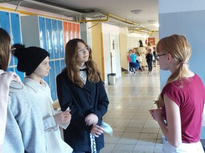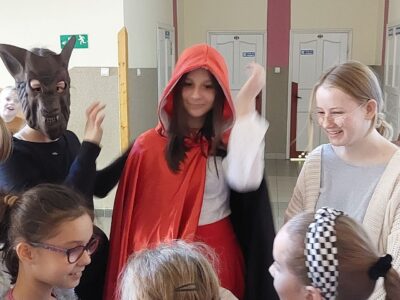 26 października 2022r. klasa 8d uczestniczyła w Narodowym Programie Rozwoju Czytelnictwa. Podczas długiej przerwy uczniowie przebrani za bohaterów wybranych utworów: “Balladyna”, “Tajemniczy ogród”, “Harry Potter”, “Opowieść wigilijna” oraz “Czerwony Kapturek”- chodzili po korytarzach szkolnych. Zadawali pytania dotyczące znajomości treści prezentowanej książki.