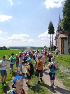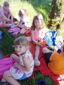 Starszaki 10 czerwca wybrały się na długi spacer połączony z piknikiem, aby poznać osiecką kapliczkę św. Tekli na Talarówce. Jest ona miniaturką nowego kościoła w Osieku. Została ufundowana i wybudowana staraniem Franciszka Kramarczyka około 1910 roku. Obecnie obiektem opiekują się potomkowie pana Franciszka i ich rodziny. Przedszkolaki po chwili skupienia i modlitwy w kapliczce, jak na piknik przystało na rozłożonych kocach spożywały smakołyki przyniesione w swoich plecaczkach. Następnie dzieci uczestniczyły w najróżniejszych grach i zabawach, które sprawiały im wiele radości.