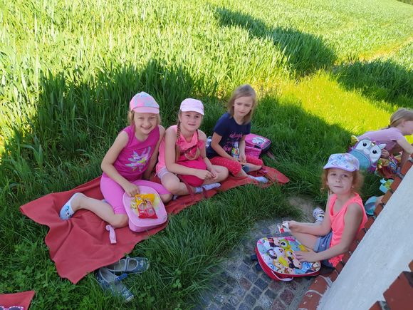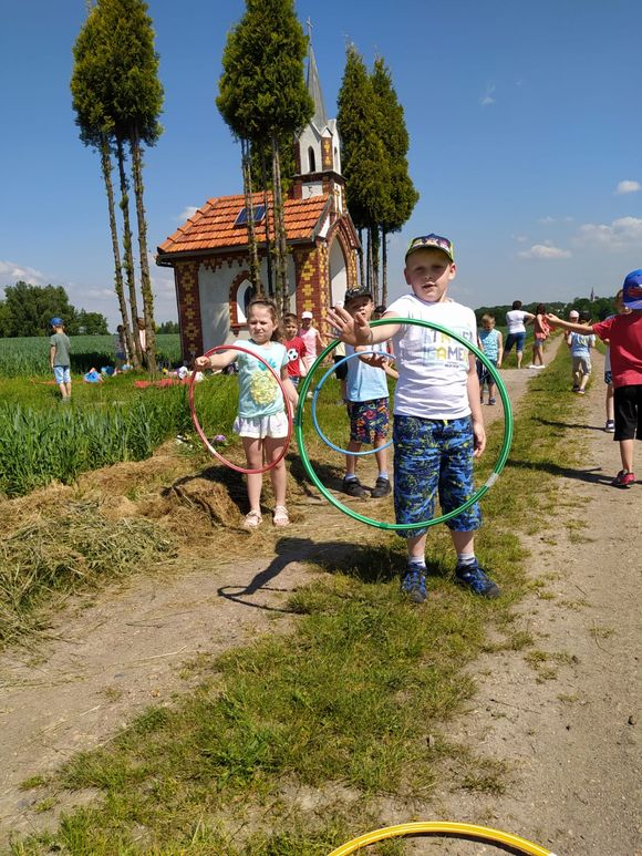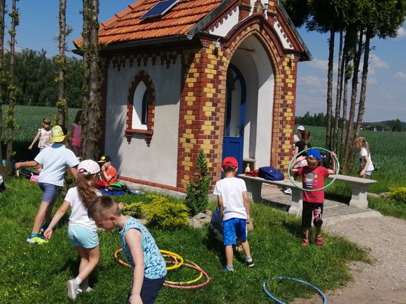 Starszaki 10 czerwca wybrały się na długi spacer połączony z piknikiem, aby poznać osiecką kapliczkę św. Tekli na Talarówce. Jest ona miniaturką nowego kościoła w Osieku. Została ufundowana i wybudowana staraniem Franciszka Kramarczyka około 1910 roku. Obecnie obiektem opiekują się potomkowie pana Franciszka i ich rodziny. Przedszkolaki po chwili skupienia i modlitwy w kapliczce, jak na piknik przystało na rozłożonych kocach spożywały smakołyki przyniesione w swoich plecaczkach. Następnie dzieci uczestniczyły w najróżniejszych grach i zabawach, które sprawiały im wiele radości.
