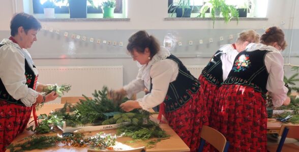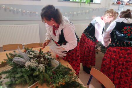 Po części wykładowej przyszedł czas na praktyczne warsztaty, podczas których uczniowie wraz z seniorami tworzyli stroiki na groby zasłużonych Osieczan. Wspólna praca okazała się wspaniałą lekcją zarówno historii, jak i kultury lokalnej. Spotkanie było doskonałą okazją do integracji, wymiany doświadczeń oraz budowania “mostów” między pokoleniami. Dzieci poznawały wartości, tradycje i historie przekazywane przez naszych gości, którzy z radością dzielili się swoją wiedzą i doświadczeniem.