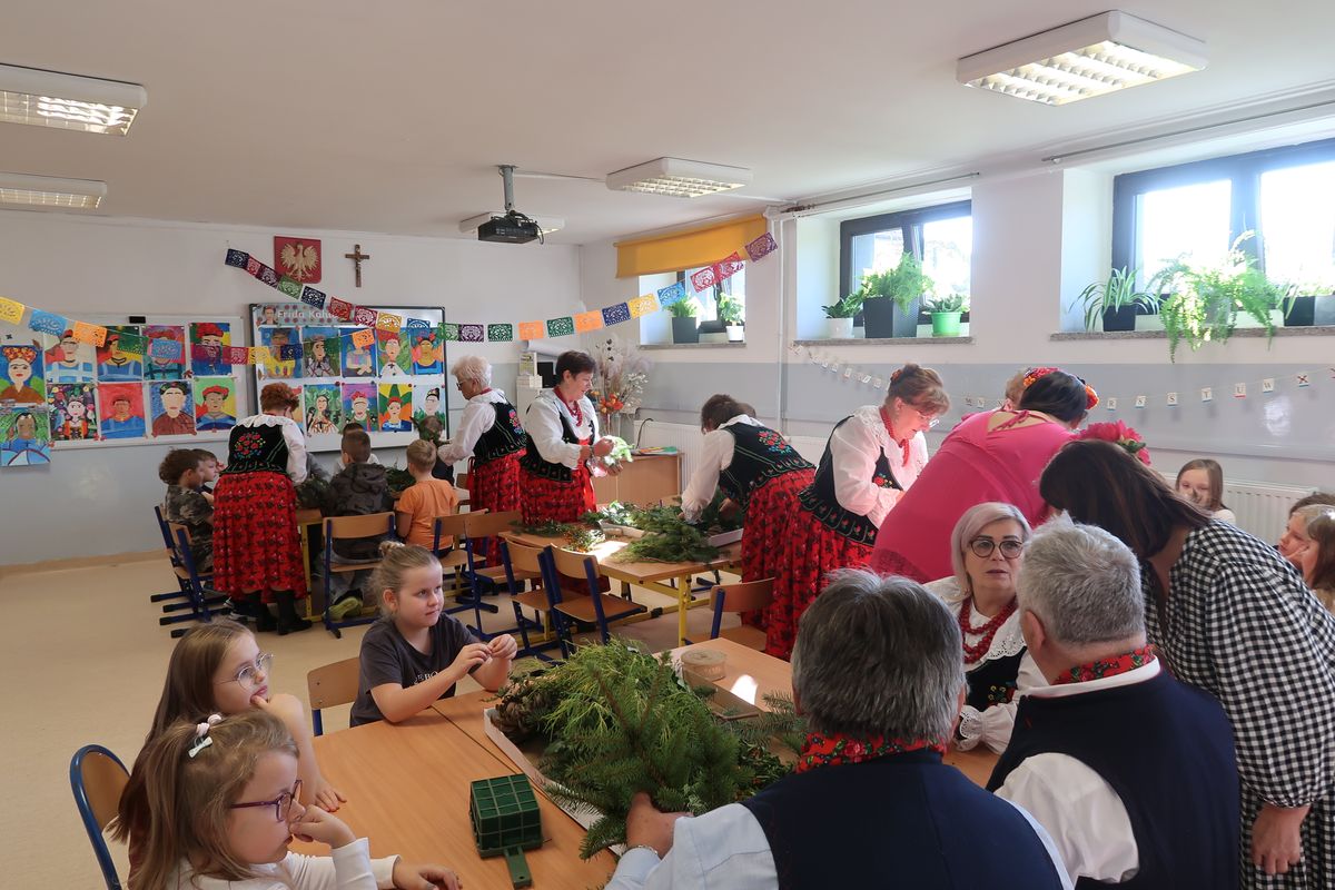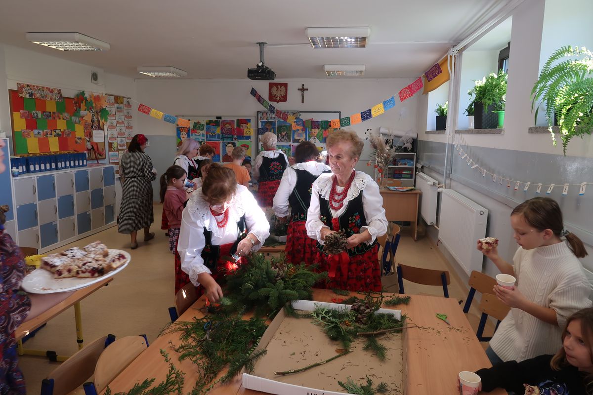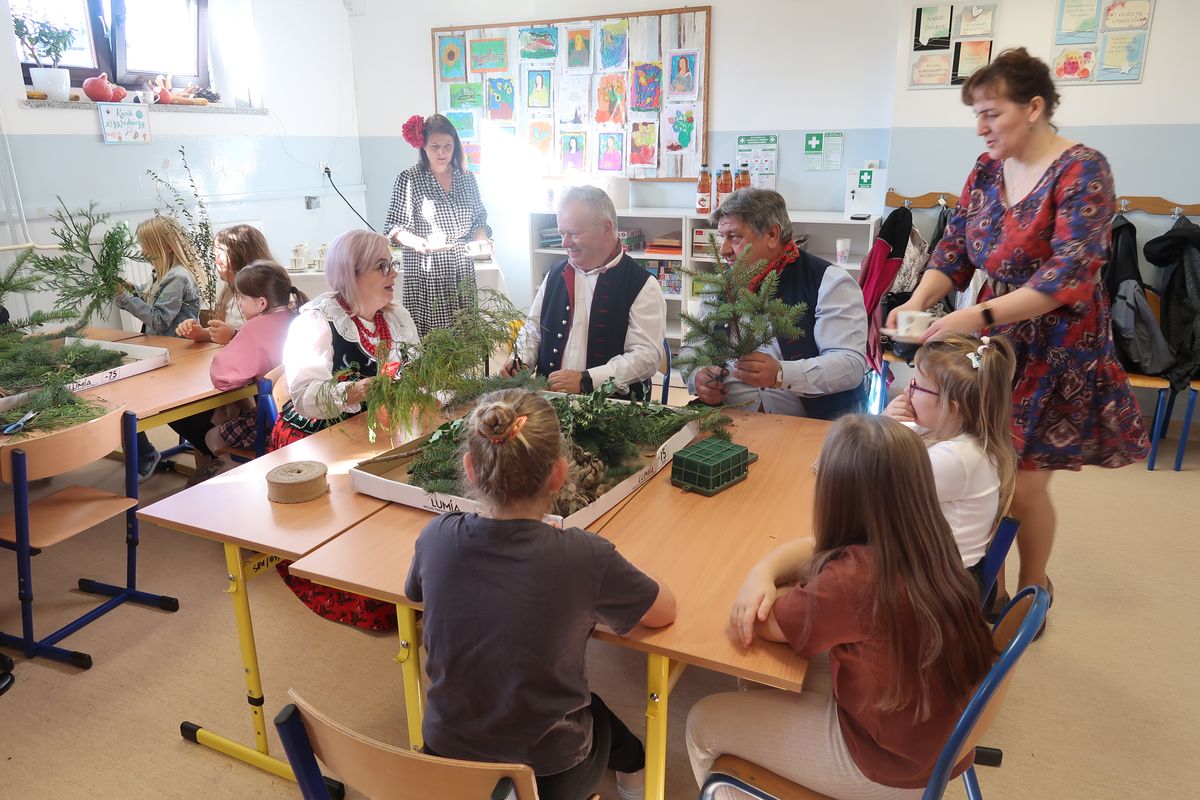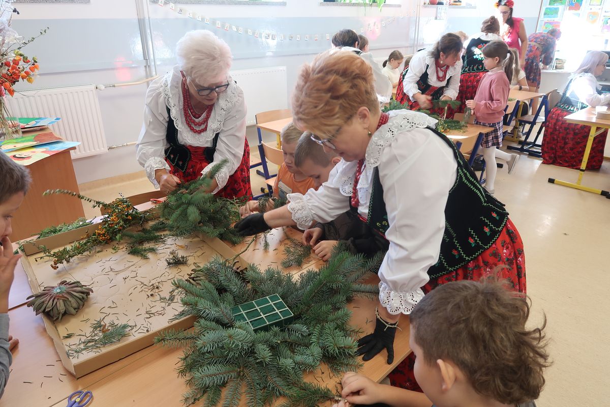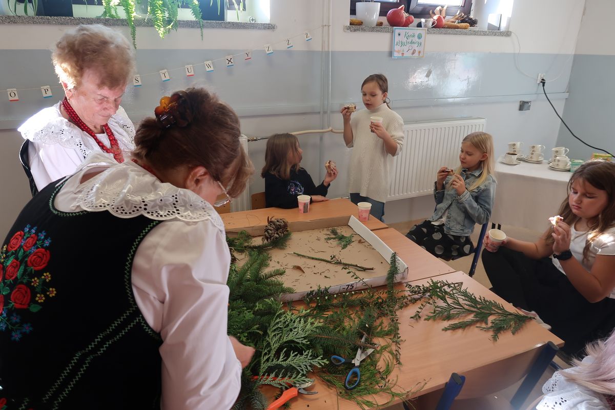 Po części wykładowej przyszedł czas na praktyczne warsztaty, podczas których uczniowie wraz z seniorami tworzyli stroiki na groby zasłużonych Osieczan. Wspólna praca okazała się wspaniałą lekcją zarówno historii, jak i kultury lokalnej. Spotkanie było doskonałą okazją do integracji, wymiany doświadczeń oraz budowania “mostów” między pokoleniami. Dzieci poznawały wartości, tradycje i historie przekazywane przez naszych gości, którzy z radością dzielili się swoją wiedzą i doświadczeniem.