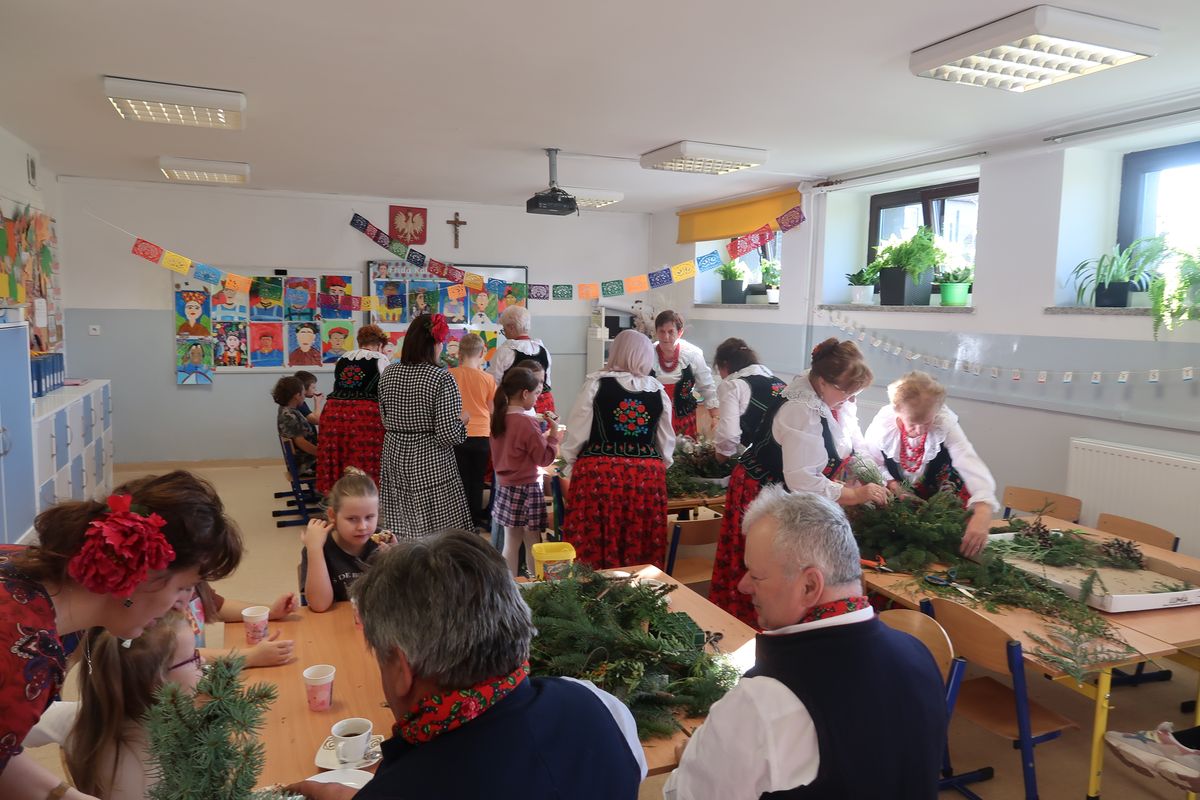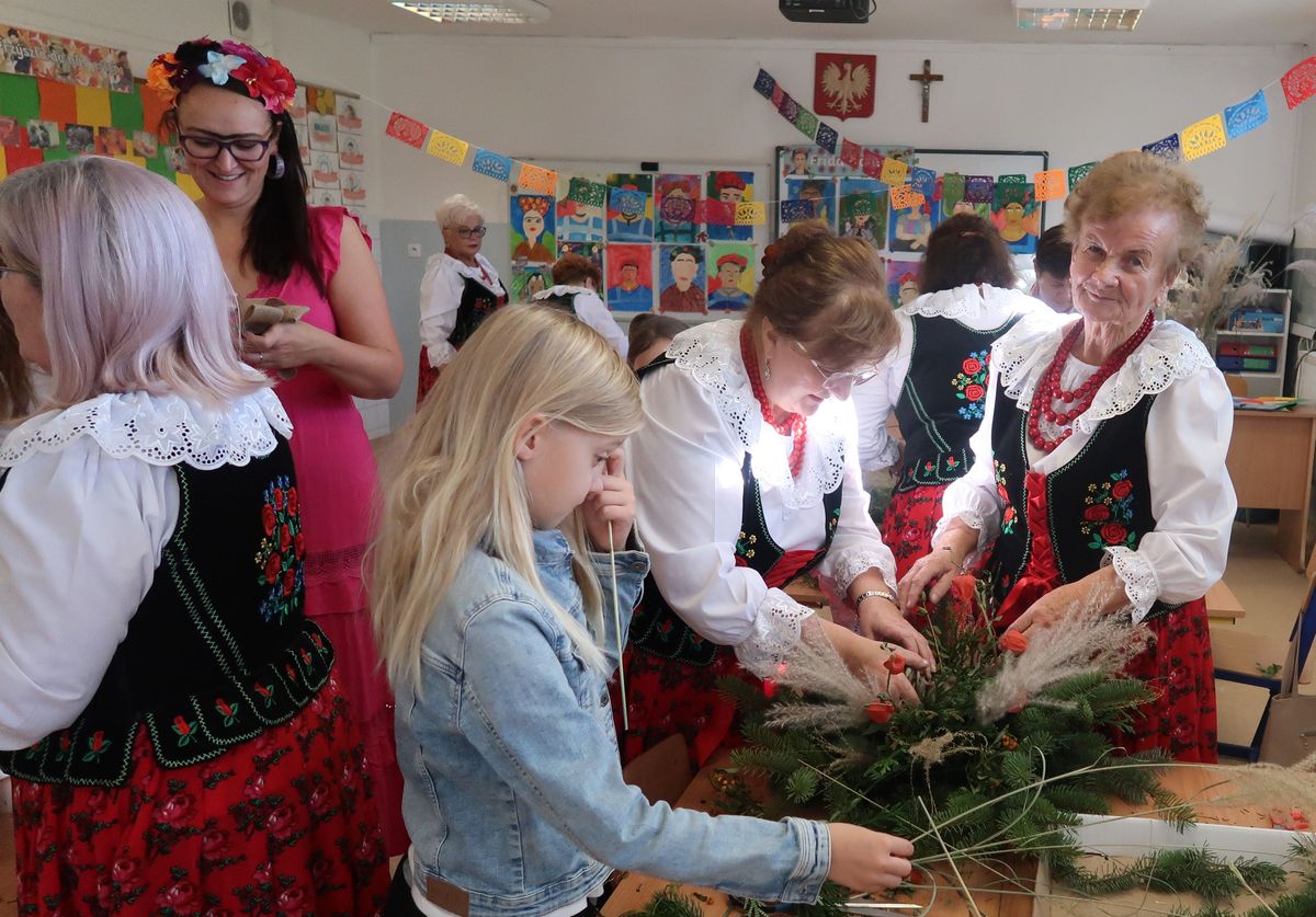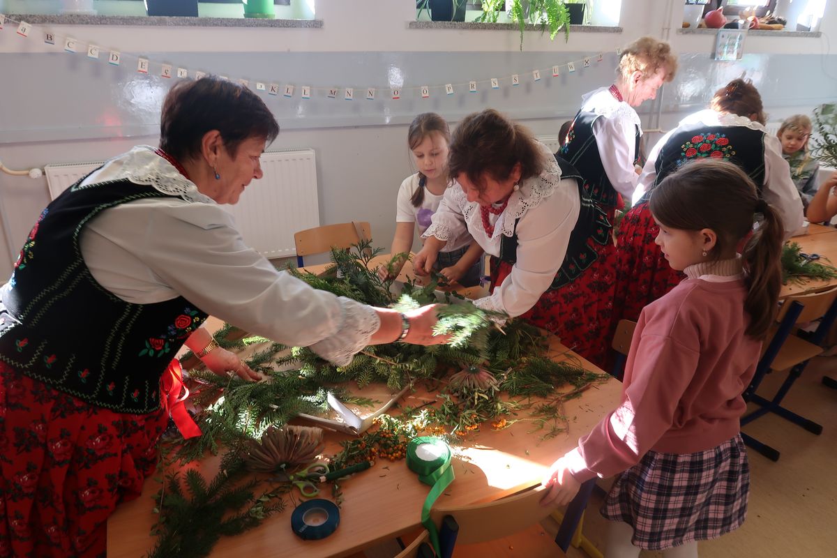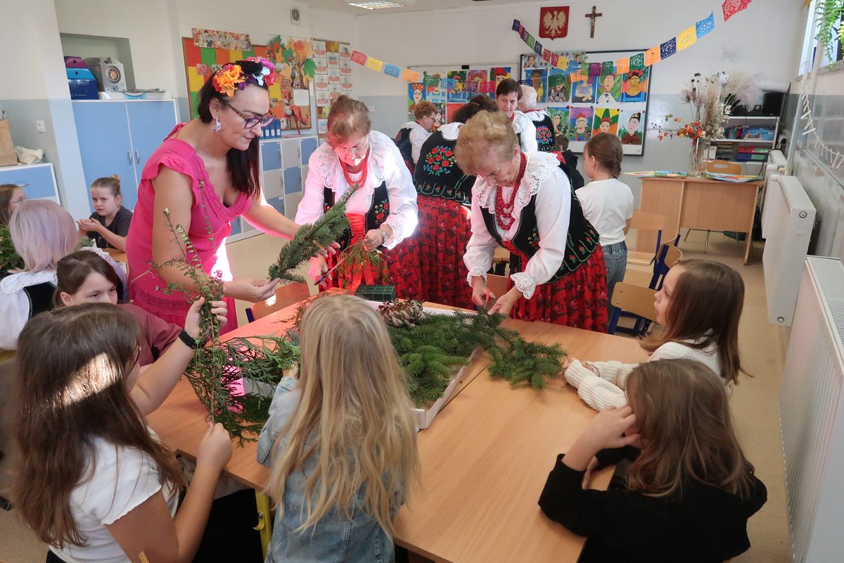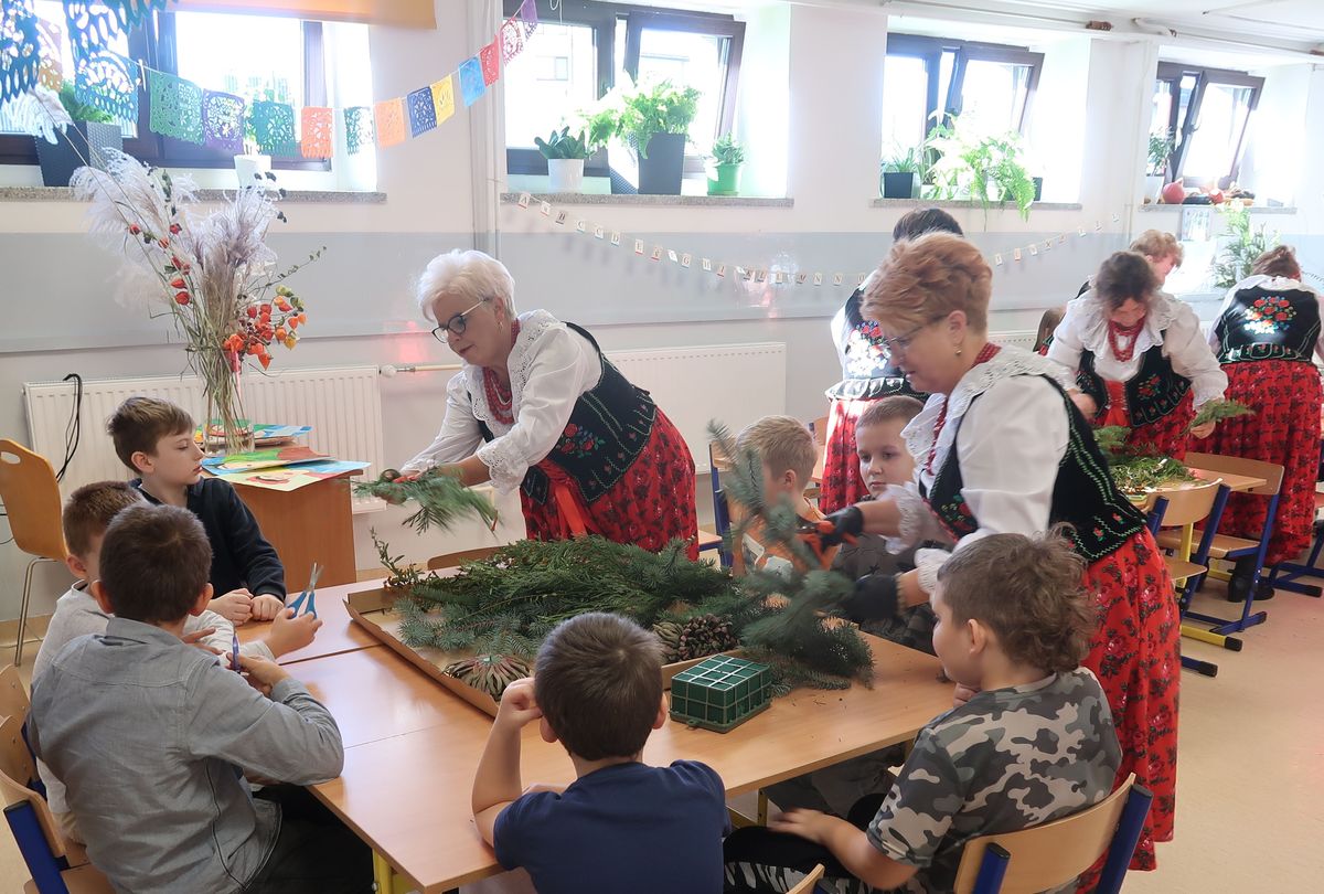 Po części wykładowej przyszedł czas na praktyczne warsztaty, podczas których uczniowie wraz z seniorami tworzyli stroiki na groby zasłużonych Osieczan. Wspólna praca okazała się wspaniałą lekcją zarówno historii, jak i kultury lokalnej. Spotkanie było doskonałą okazją do integracji, wymiany doświadczeń oraz budowania “mostów” między pokoleniami. Dzieci poznawały wartości, tradycje i historie przekazywane przez naszych gości, którzy z radością dzielili się swoją wiedzą i doświadczeniem.