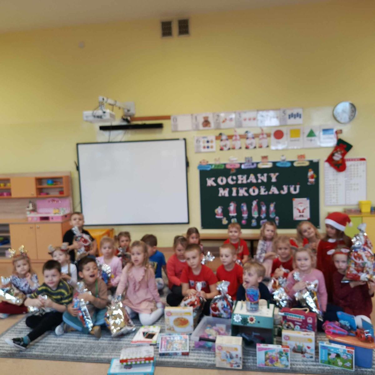 Tegoroczne spotkanie z Mikołajem rozpoczęło się obejrzeniem spektaklu pt.” Gdzie się podział Święty Mikołaj?” w sali WDK w Osieku. Następnie dzieci wspólnie z Mikołajem i jego pomocnikiem udały się do swoich przedszkolnych sal. Podczas wizyty nie brakowało pozytywnych emocji, miłych gestów i uśmiechów od ucha do ucha, które zdawały się być jeszcze większe na widok ogromnych worków z prezentami, które towarzyszyły Mikołajowi.
