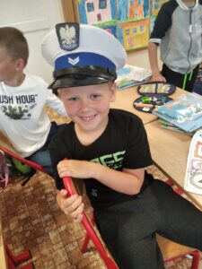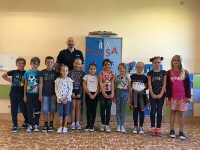 17 września naszą szkołę odwiedzili policjanci z Komendy Powiatowej Policji w Oświęcimiu. Podczas spotkania nasi uczniowie mieli okazję porozmawiać o zachowaniu bezpieczeństwa w drodze do szkoły i poza szkołą, przypomnieli sobie podstawowe zasady w czasie przechodzenia przez jezdnię. Dowiedzieli się również, jak należy zachować się w kontaktach z obcymi ludźmi, jak dbać o bezpieczeństwo własne i innych oraz do kogo zwracać się o pomoc w sytuacji zagrożenia.