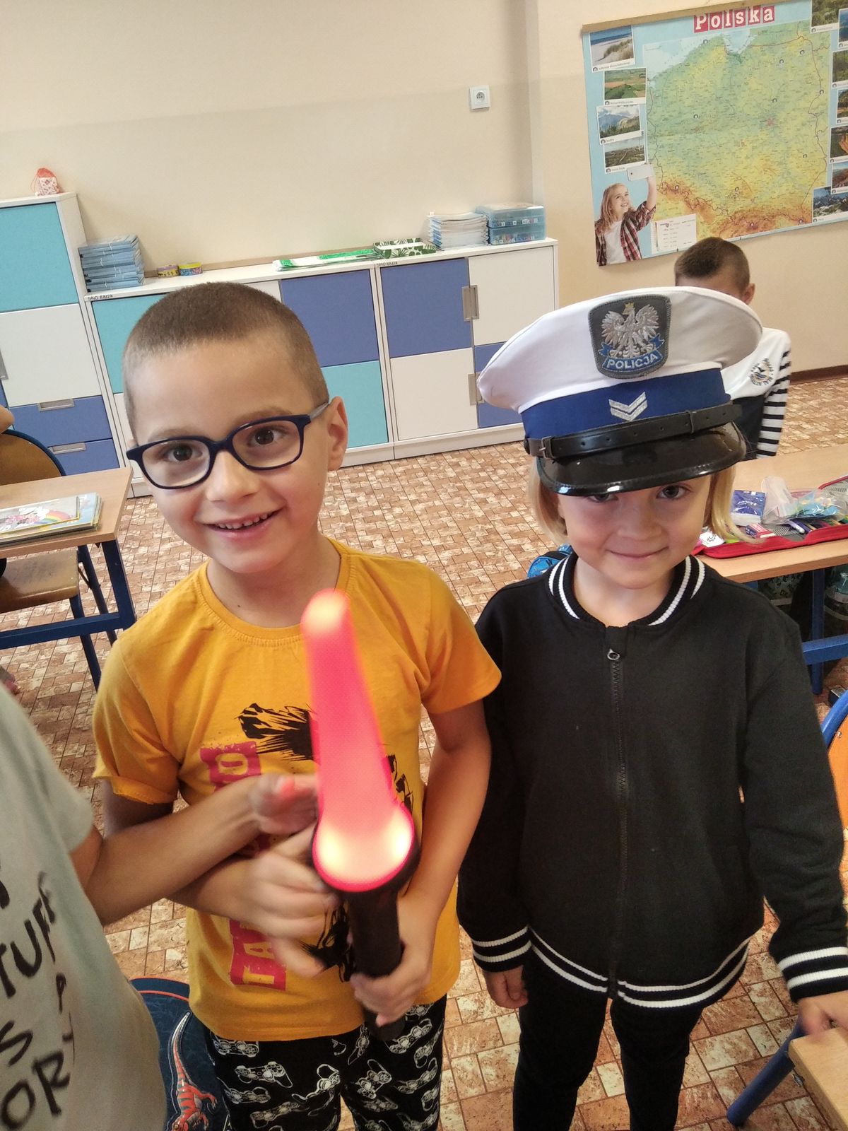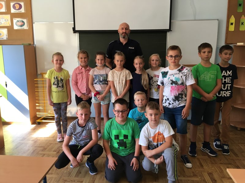 17 września naszą szkołę odwiedzili policjanci z Komendy Powiatowej Policji w Oświęcimiu. Podczas spotkania nasi uczniowie mieli okazję porozmawiać o zachowaniu bezpieczeństwa w drodze do szkoły i poza szkołą, przypomnieli sobie podstawowe zasady w czasie przechodzenia przez jezdnię. Dowiedzieli się również, jak należy zachować się w kontaktach z obcymi ludźmi, jak dbać o bezpieczeństwo własne i innych oraz do kogo zwracać się o pomoc w sytuacji zagrożenia.