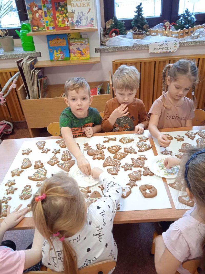 Przedszkolaki, jak co roku bardzo solidnie przygotowują się do świąt, nie tylko biorą udział w świątecznych akcjach charytatywnych, własnoręcznie przygotowują ozdoby choinkowe, uczą się świątecznych piosenek i kolęd, ale także pieką pyszne pierniczki, które samodzielnie ozdabiają lukrem i kolorowymi, słodkimi ozdobami. Zapraszamy do słodkiej galerii zdjęć…