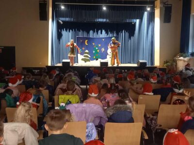 5 grudnia w naszym przedszkolu panowała niezwykle świąteczna atmosfera. Tego dnia odwiedził nas wyjątkowy gość – Święty Mikołaj! Zanim jednak pojawił się w sali, dzieci obejrzały pełne ciepła i humoru przedstawienie pt. “Zagubiony list”, które wprowadziło wszystkich w magiczny nastrój.