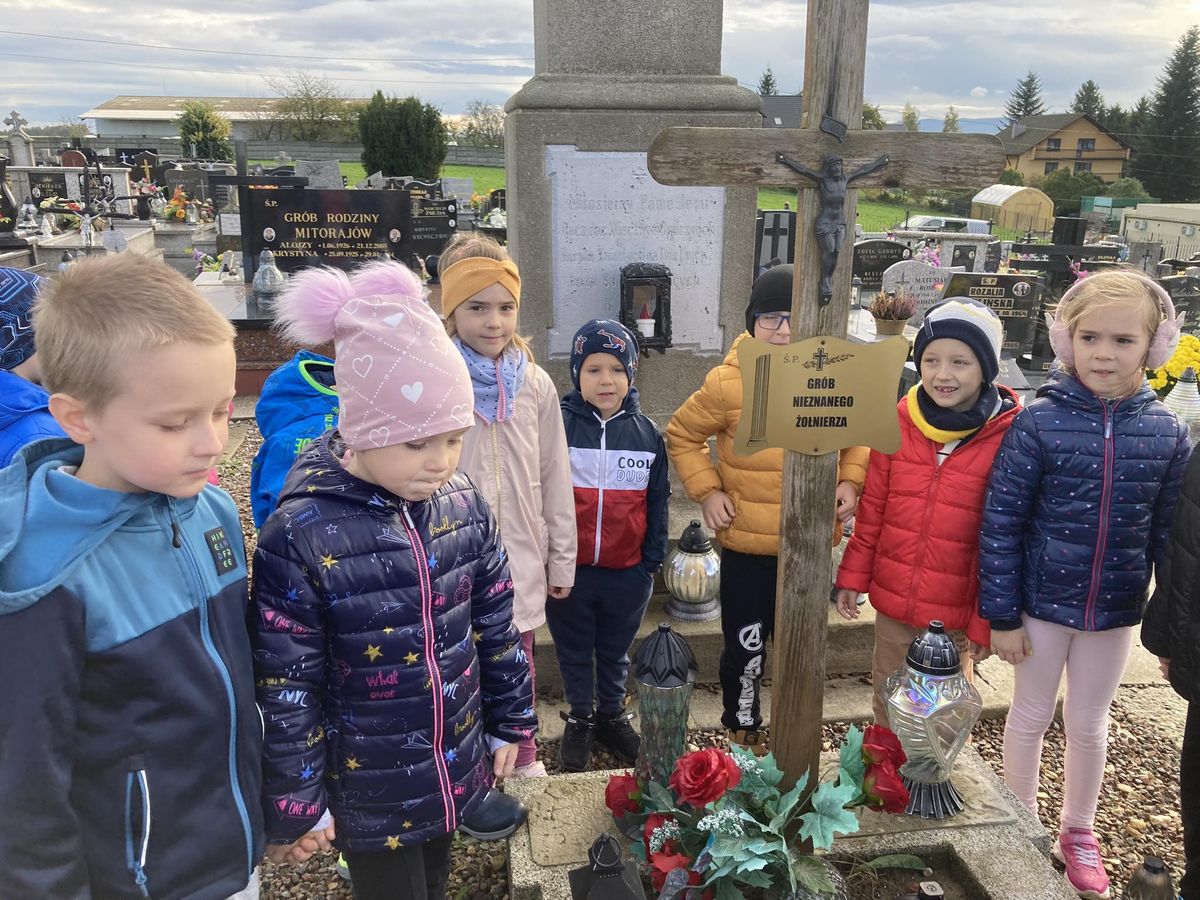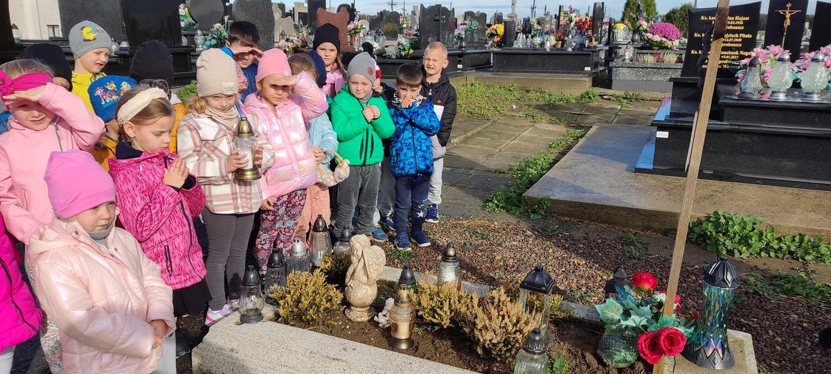Już po raz kolejny dzieci z naszego przedszkola wzięły udział w akcji Ministerstwa Edukacji i Nauki „Szkoła pamięta”. Celem akcji jest zwrócenie uwagi dzieci na potrzebę pielęgnowania pamięci o naszych przodkach. Odbywa się w okresie, w którym wspominamy zarówno naszych bliskich, jak i bohaterów naszej wolności, szczególnie tych, którzy są związani z historią naszego regionu. W ten sposób inicjatywa nawiązuje do polskiej tradycji Świąt Zadusznych.