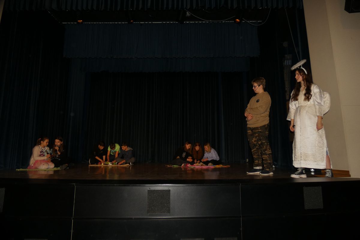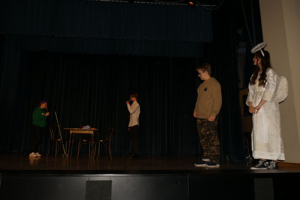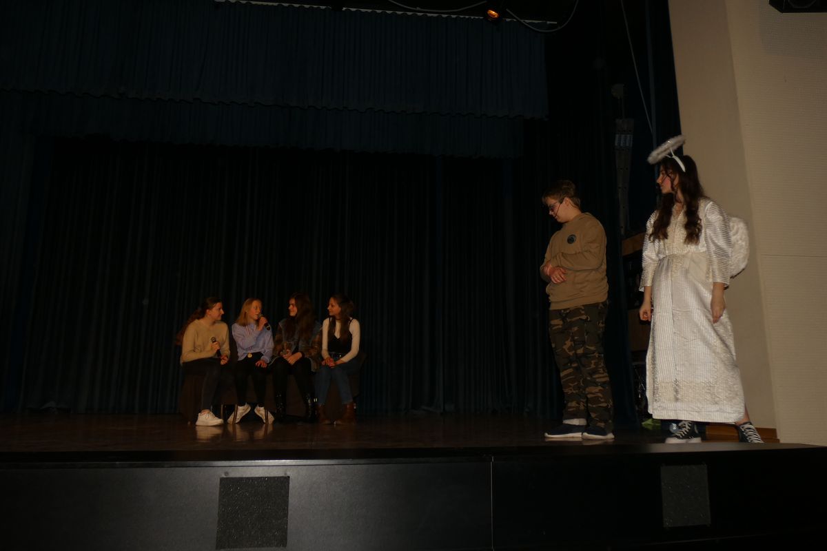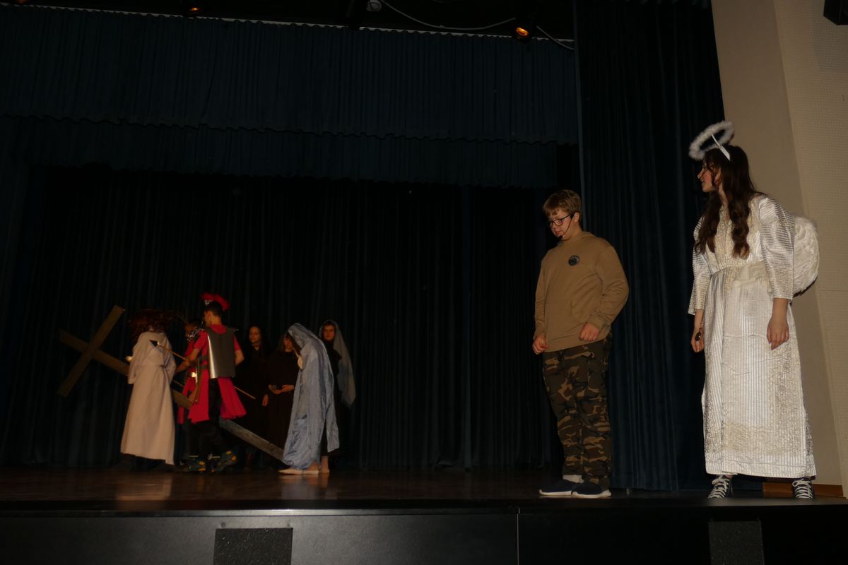 Wszyscy aktorzy zagrali swoje role bardzo przejmująco i realistycznie. W głównych rolach wystąpili: Miłosz Kańtor (Antek – zbuntowany nastolatek) i Anna Kasperek (Anioł/Kurier). W pozostałych rolach: Lena Sawicka (mama Antka), Michał Bernaś (tata Antka), Oliwia Szczurek (młodsza siostra Antka), Emilia Blarowska (Julia – mistrzyni szermierki na wózkach), Amelia Wysogląd, Natalia Luranc i Katarzyna Jurczyk (przyjaciółki Julki), Kamila Wanat (siostra Julki), Emilia Kolasa (Zuzia – mała dziewczynka, która niedawno straciła rodziców), Gabriela Naglik ( Wiktoria –  dziewczyna pocieszająca Zuzię), Wiktor Marszałek, Kamil Mrozik i Piotr Wasztyl (Bartek, Staś i Artur – chłopcy mieszkający w Domu Dziecka/ żołnierze poganiający Jezusa), Agnieszka Płonka (Natalia – uboga dziewczynka marząca o karierze piosenkarki), Dominik Płonka (tata Natalii), Konrad Kramarczyk (Jezus), Jagoda Dusik i Kinga Jędrzejowska (kobiety towarzyszące Jezusowi w męce). Nad całością dzieła scenicznego czuwali: ks. Przemysław Gorzołka oraz panie Agnieszka Frazik i Ilona Cybuch. Występom towarzyszył śpiew chóru pod batutą pani Moniki Rochowiak. Przedstawienie zostało zaprezentowane jeszcze dwukrotnie: 10.04 dla społeczności lokalnej na sali WDK w Osieku oraz 11.04 dla bielskiej młodzieży w ODK w Lipniku.