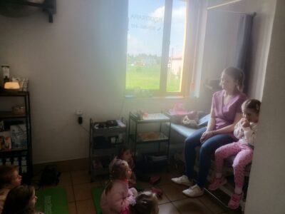7 maja przedszkolaki z grupy „Misiów” w ramach innowacji pedagogicznej „Kim zostanę, gdy dorosnę” udały się na spotkanie z mamą Ewelinki – panią Pauliną, która jest fizjoterapeutką. Pani Paulina pokazała dzieciom swój gabinet i omówiła różne sprzęty potrzebne jej do pracy. Przedszkolaki dowiedziały się w jaki sposób dbać o prawidłową postawę ciała oraz jak powinno się prawidłowo oddychać. Ponadto miały okazję uczestniczyć w wielu ćwiczeniach ruchowych, relaksacyjnych oraz oddechowych.