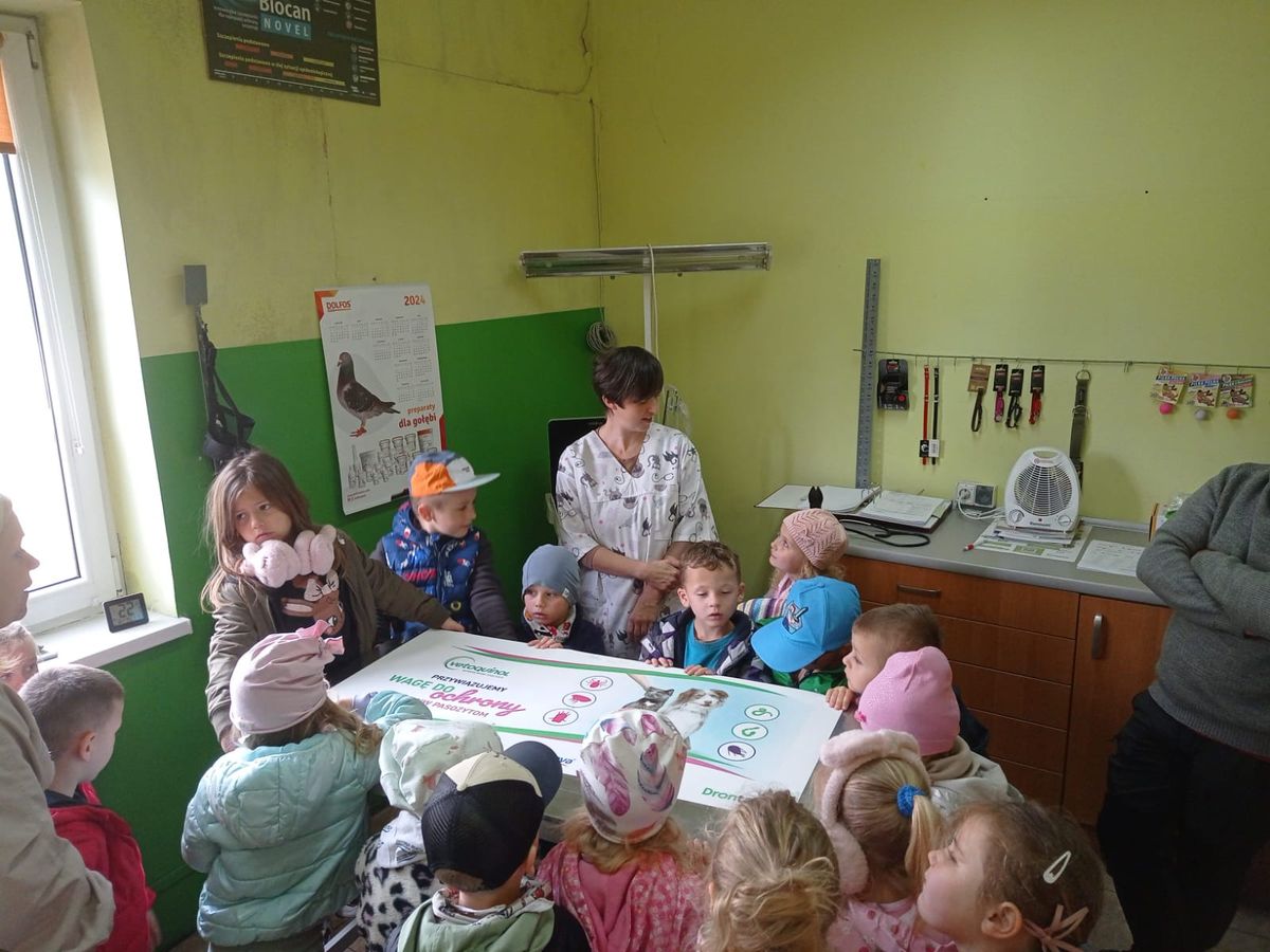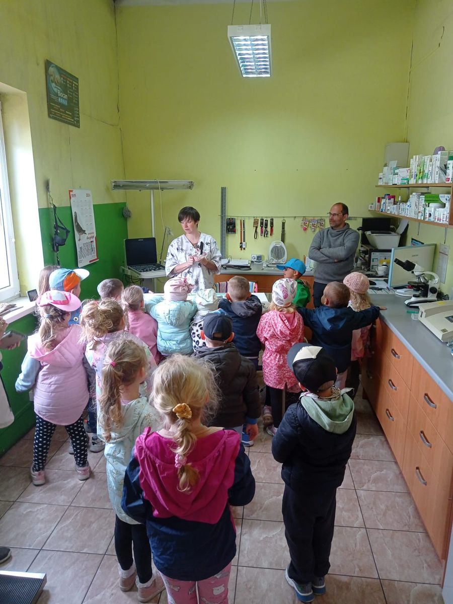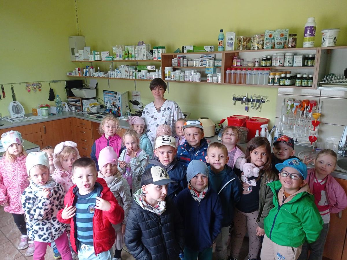 Przedszkolaki z grupy ,,Sarenek” w ramach realizacji innowacji pedagogicznej „Kim zostanę, gdy dorosnę?” odwiedziły gabinet weterynaryjny Amicus. To wyjątkowe wydarzenie miało na celu przybliżenie dzieciom pracy weterynarza oraz rozbudzenie ich ciekawości i zainteresowania opieką nad zwierzętami. Podczas wizyty dzieci miały okazję obejrzeć różnorodne narzędzia używane przez weterynarza, dowiedzieć się, jak wygląda codzienna praca w gabinecie oraz poznać podstawowe zasady dbania o zdrowie zwierząt. Pani Sylwia opowiadała o tym, jak ważne jest cierpliwe i delikatne podejście do każdego czworonożnego pacjenta, a także pokazywała, jak wygląda badanie zwierząt i jakie środki ostrożności stosuje w swojej pracy. Dzieci były pełne entuzjazmu i zafascynowane możliwością poznania tajników zawodu weterynarza.