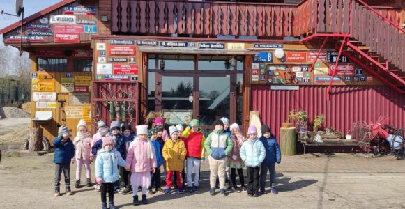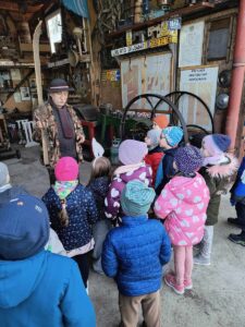 Przedszkolaki z najstarszych grup 14 marca 2024 r. udały się na pieszą wycieczkę do pobliskiej Izby Regionalnej Doliny Karpia, która posiada bogatą kolekcję przedmiotów użytkowych, rękodzieła i sztuki, takich jak.: stare żelazka, obrazy, zegary, unikatowe druki i wiele innych. Znaczącą część zgromadzonych eksponatów stanowią przedmioty związane z hodowlą karpia osieckiego. Dzieci mogły zobaczyć jak dawniej wyglądała ława szkolna, liczydło, a nawet kałamarz. Dużym zainteresowaniem, wśród męskiej części grup,cieszyły się maszyny rolnicze z dawnych lat.