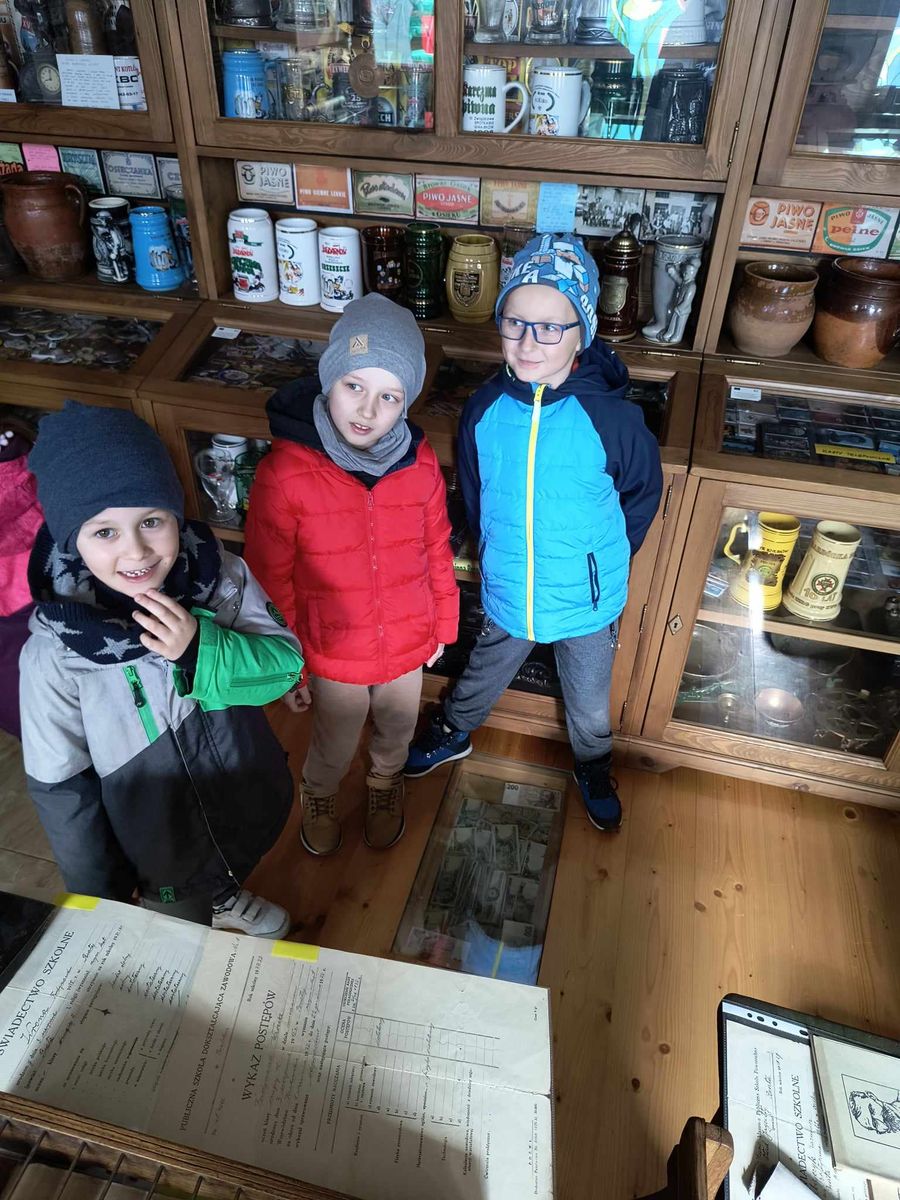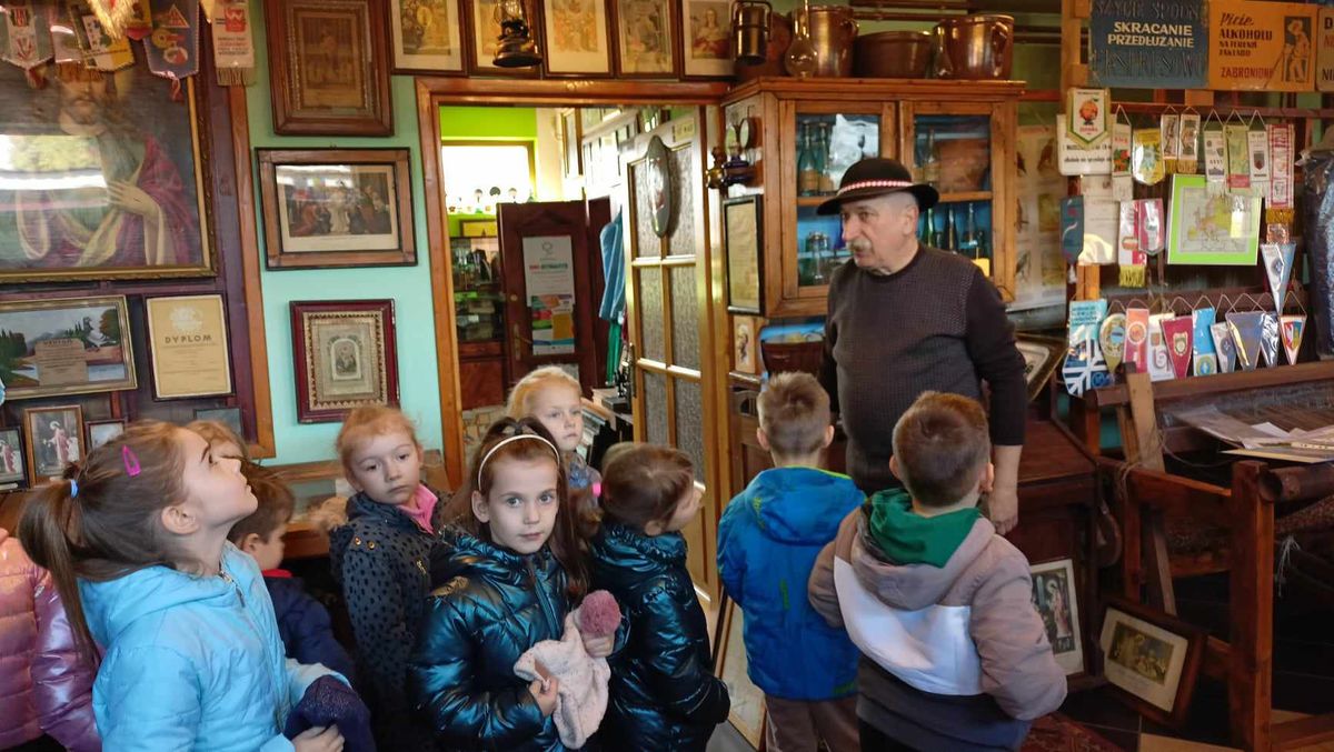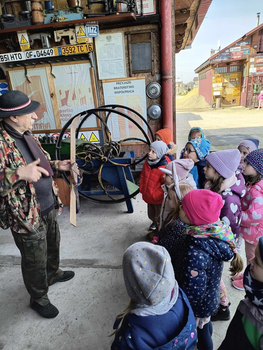 Przedszkolaki z najstarszych grup 14 marca 2024 r. udały się na pieszą wycieczkę do pobliskiej Izby Regionalnej Doliny Karpia, która posiada bogatą kolekcję przedmiotów użytkowych, rękodzieła i sztuki, takich jak.: stare żelazka, obrazy, zegary, unikatowe druki i wiele innych. Znaczącą część zgromadzonych eksponatów stanowią przedmioty związane z hodowlą karpia osieckiego. Dzieci mogły zobaczyć jak dawniej wyglądała ława szkolna, liczydło, a nawet kałamarz. Dużym zainteresowaniem, wśród męskiej części grup,cieszyły się maszyny rolnicze z dawnych lat.
