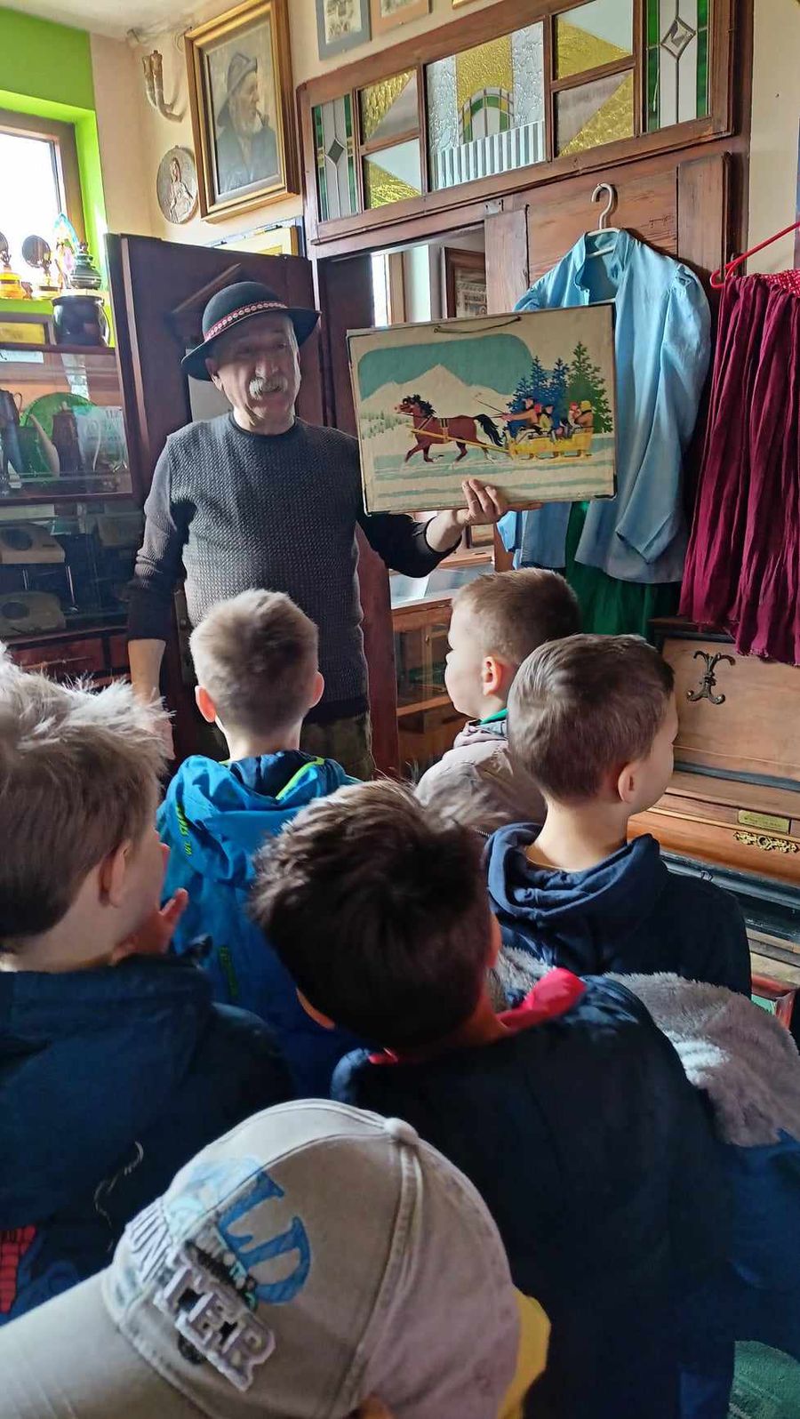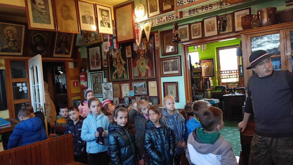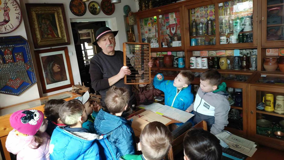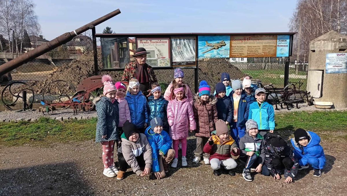 Przedszkolaki z najstarszych grup 14 marca 2024 r. udały się na pieszą wycieczkę do pobliskiej Izby Regionalnej Doliny Karpia, która posiada bogatą kolekcję przedmiotów użytkowych, rękodzieła i sztuki, takich jak.: stare żelazka, obrazy, zegary, unikatowe druki i wiele innych. Znaczącą część zgromadzonych eksponatów stanowią przedmioty związane z hodowlą karpia osieckiego. Dzieci mogły zobaczyć jak dawniej wyglądała ława szkolna, liczydło, a nawet kałamarz. Dużym zainteresowaniem, wśród męskiej części grup,cieszyły się maszyny rolnicze z dawnych lat.
