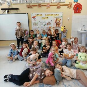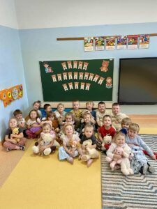 25 listopada w naszym przedszkolu odbyły się radosne obchody Światowego Dnia Pluszowego Misia – święta, które od lat wzbudza u dzieci (i dorosłych!) ogromną sympatię. Tego dnia wszystkie przedszkolaki przyszły do przedszkola w towarzystwie swoich ukochanych pluszowych misiów. Były misie duże, małe, nowe, stare, kolorowe, klasyczne i bardziej nowoczesne. Każdy wyjątkowy i ważny dla swojego małego właściciela.