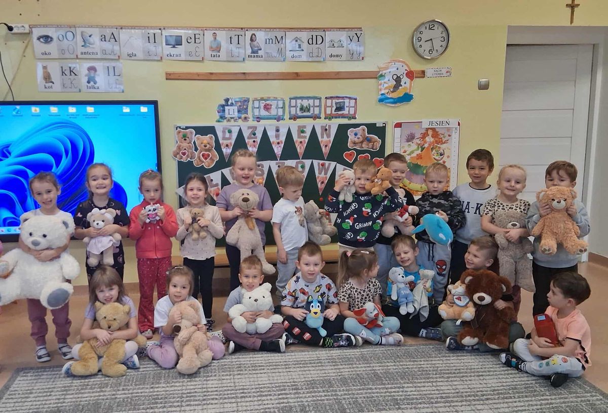 25 listopada w naszym przedszkolu odbyły się radosne obchody Światowego Dnia Pluszowego Misia – święta, które od lat wzbudza u dzieci (i dorosłych!) ogromną sympatię. Tego dnia wszystkie przedszkolaki przyszły do przedszkola w towarzystwie swoich ukochanych pluszowych misiów. Były misie duże, małe, nowe, stare, kolorowe, klasyczne i bardziej nowoczesne. Każdy wyjątkowy i ważny dla swojego małego właściciela.