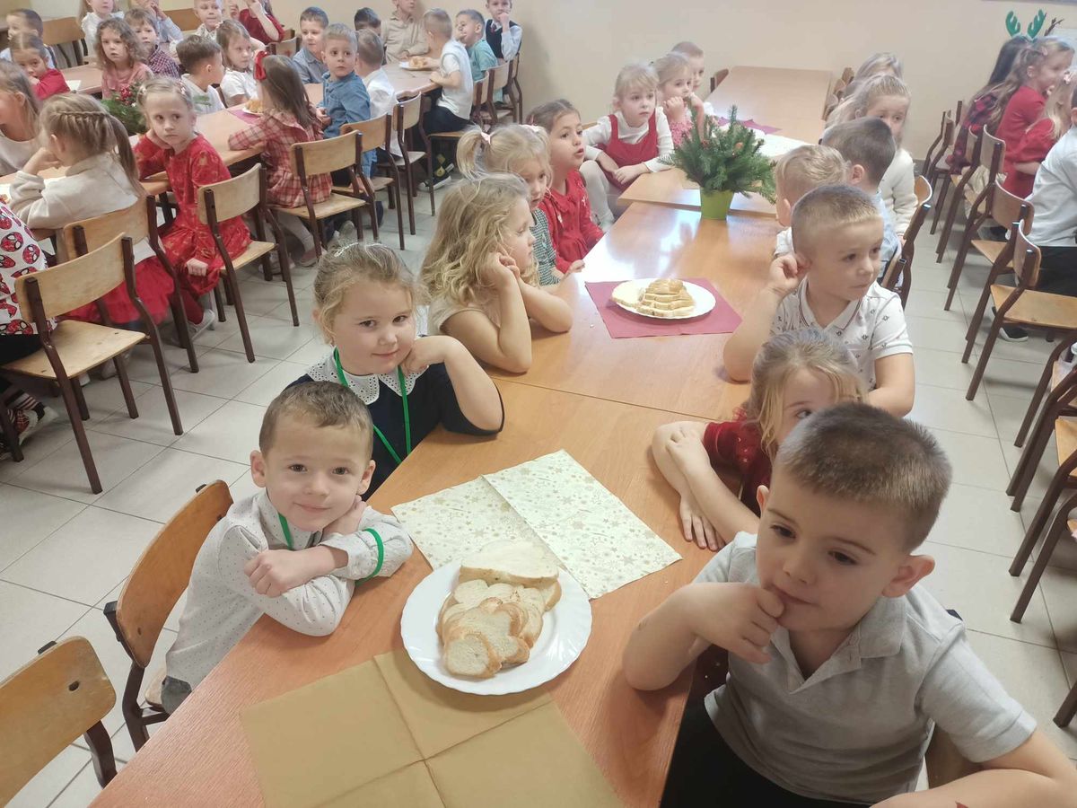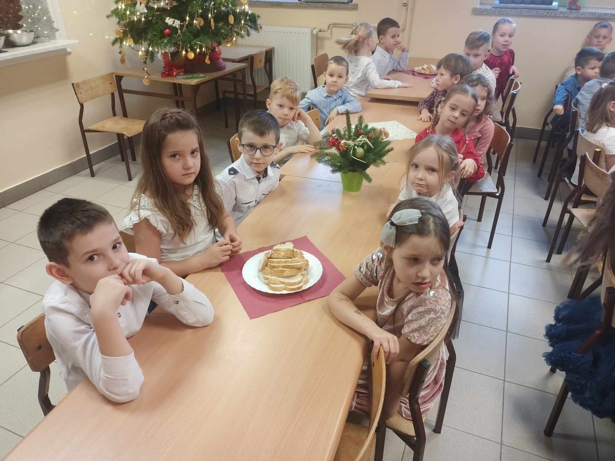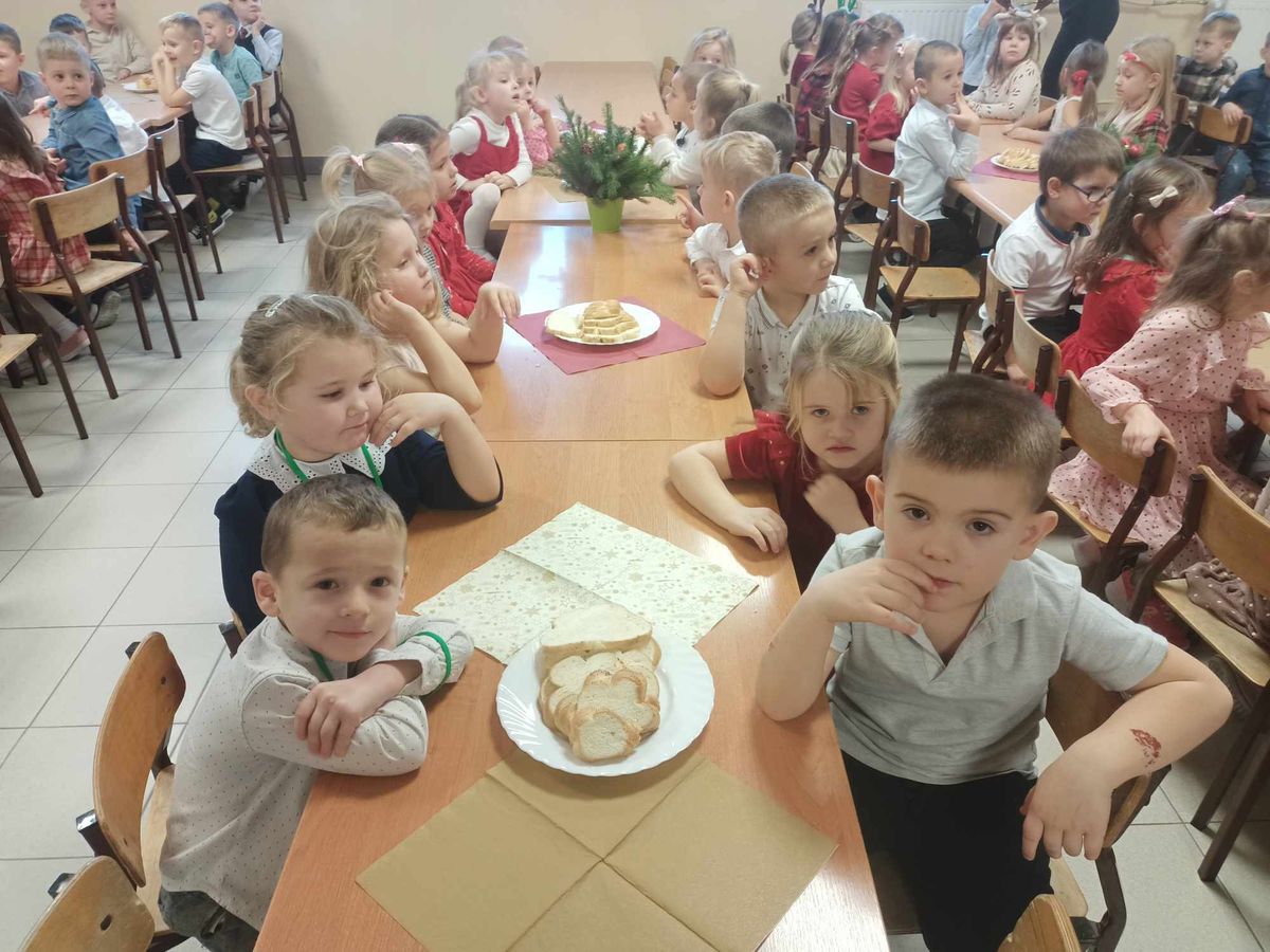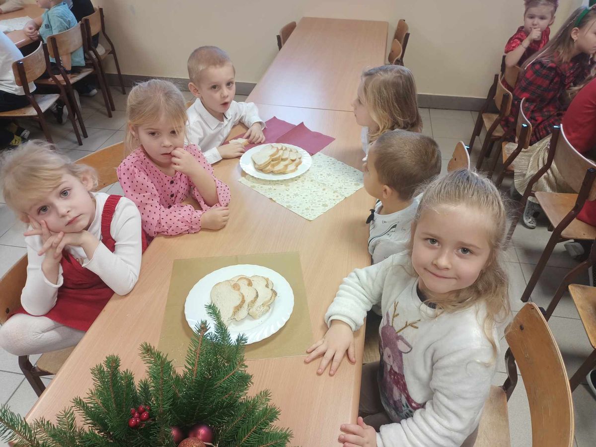 20 grudnia w naszym przedszkolu obchodziliśmy jeden z najpiękniejszych dni w roku – Wigilię Bożego Narodzenia. W ten szczególny dzień panowała ożywiona atmosfera. Świąteczne dekoracje oraz dzieci w eleganckich strojach wprowadzały nastrój oczekiwania na wyjątkowe, niecodzienne wydarzenie. Uroczystość rozpoczęły wspólne życzenia oraz kolędowanie. Na stole pojawiły się tradycyjne świąteczne przysmaki. Był to czas pełen radości.