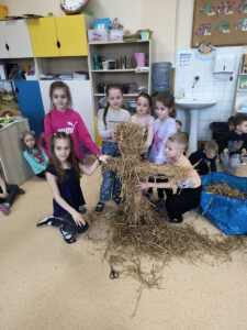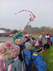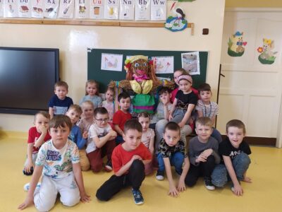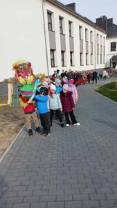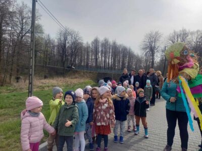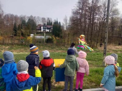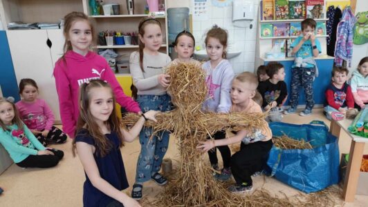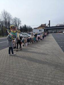 21 marca przedszkolaki wspólnie z członkami chóru odbyły tradycyjny pochód z kukłą marzanny na czele. Po pożegananiu słomianej panny dzieci wróciły do przedszkola z gaikiem, w asyście gości śpiewających tradycyjne pieśni ludowe. Następnie wszyscy zgromadziliśmy się na sali gimnastycznej, gdzie radośnie świętowaliśmy pierwszy dzień kalendarzowej wiosny.
