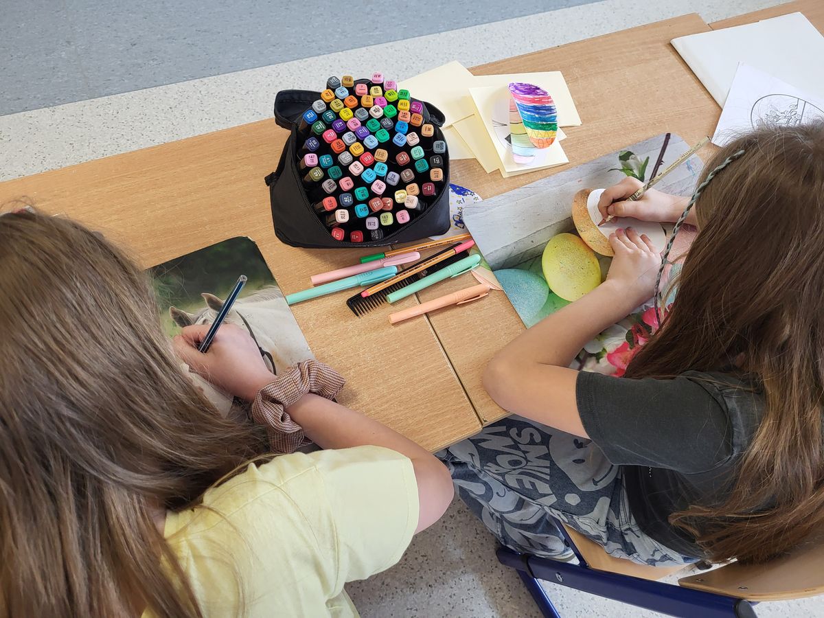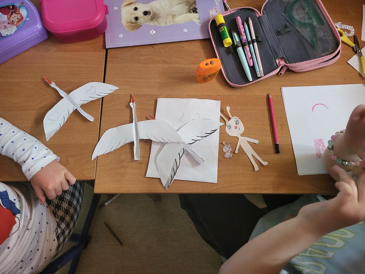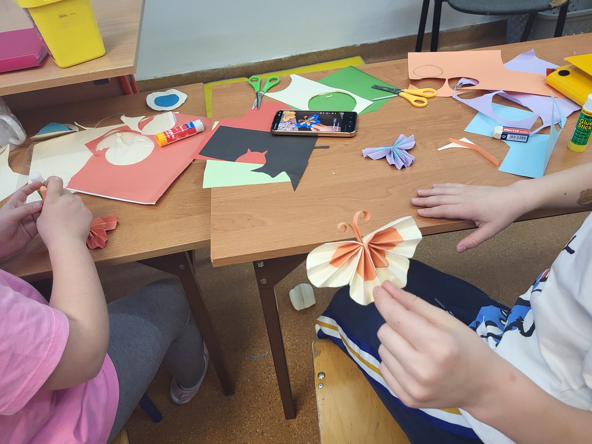 Uczniowie uczęszczający na zajęcia do świetlicy szkolnej przywitali wiosnę, tworząc kolorowe prace plastyczne. Powstały przestrzenne motyle i kwiaty. Nie zabrakło też przylatujących bocianów i wielobarwnych ptaków. Dzieci przygotowywały się  do Świąt Wielkanocnych. Wspólnie z nauczycielami stworzyły kartki świąteczne, które podarowały pracownikom szkoły.