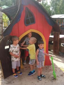 29 czerwca 2021r dzieci z najmłodszych grup przedszkolnych: Krasnoludki, Zajączki i Misie wybrały się na wycieczkę kończącą rok szkolny. Celem podróży było Mini Zoo – AgroKucyk w Inwałdzie. Pierwszą atrakcją był sam przejazd na miejsce i z powrotem, gdyż dzieci podróżowały ciuchcią. Na miejscu zwiedziły zoo. Z zafascynowaniem wypatrywały mieszkających w nim zwierzaków, niektóre nawet same karmiły. Następnie skorzystały również ze znajdującego się tam figloparku, gdzie dały upust swojej niespożytej energii. Do przedszkola wróciły zmęczone, ale bardzo zadowolone, a uśmiechy do końca nie schodziły z ich buzi!
