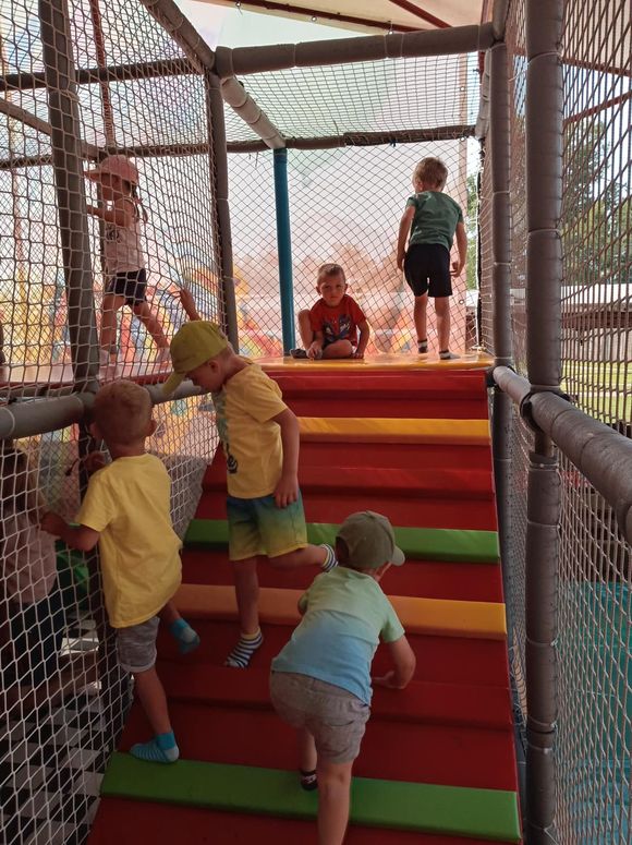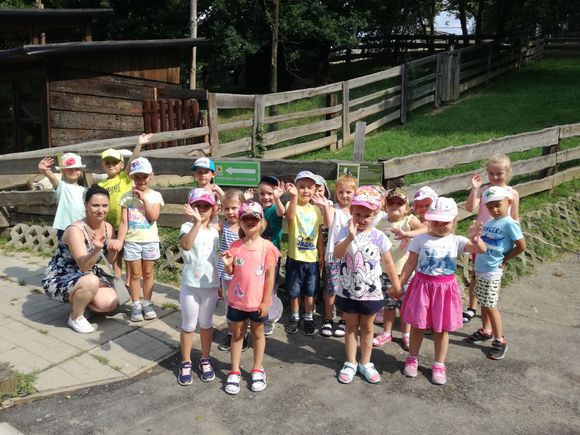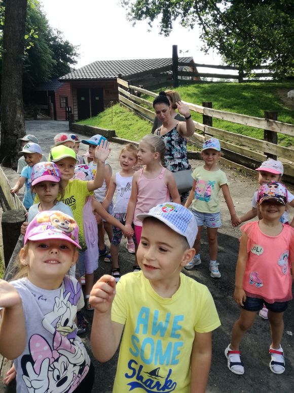29 czerwca 2021r dzieci z najmłodszych grup przedszkolnych: Krasnoludki, Zajączki i Misie wybrały się na wycieczkę kończącą rok szkolny. Celem podróży było Mini Zoo – AgroKucyk w Inwałdzie. Pierwszą atrakcją był sam przejazd na miejsce i z powrotem, gdyż dzieci podróżowały ciuchcią. Na miejscu zwiedziły zoo. Z zafascynowaniem wypatrywały mieszkających w nim zwierzaków, niektóre nawet same karmiły. Następnie skorzystały również ze znajdującego się tam figloparku, gdzie dały upust swojej niespożytej energii. Do przedszkola wróciły zmęczone, ale bardzo zadowolone, a uśmiechy do końca nie schodziły z ich buzi!