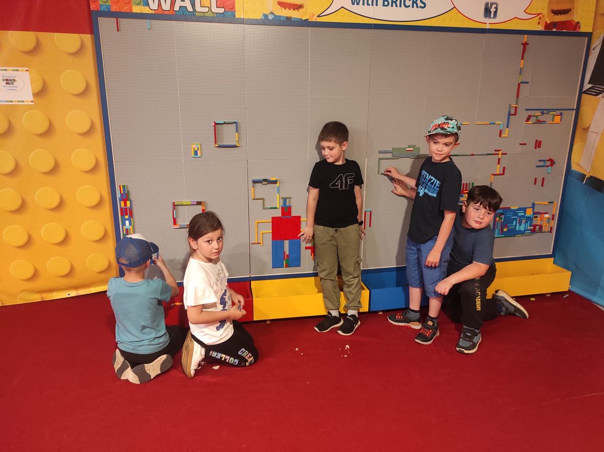 Po wizycie w kopalni pierwszoklasiści udali się na niezwykłą wystawę zbudowaną z klocków LEGO. Tam mogli podziwiać imponujące konstrukcje i tematyczne makiety Uczniowie mieli również możliwość spróbowania swoich sił w kreatywnym budowaniu z klocków, co było doskonałym uzupełnieniem pełnego atrakcji dnia.