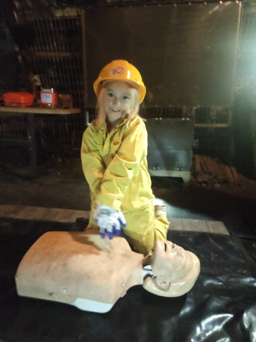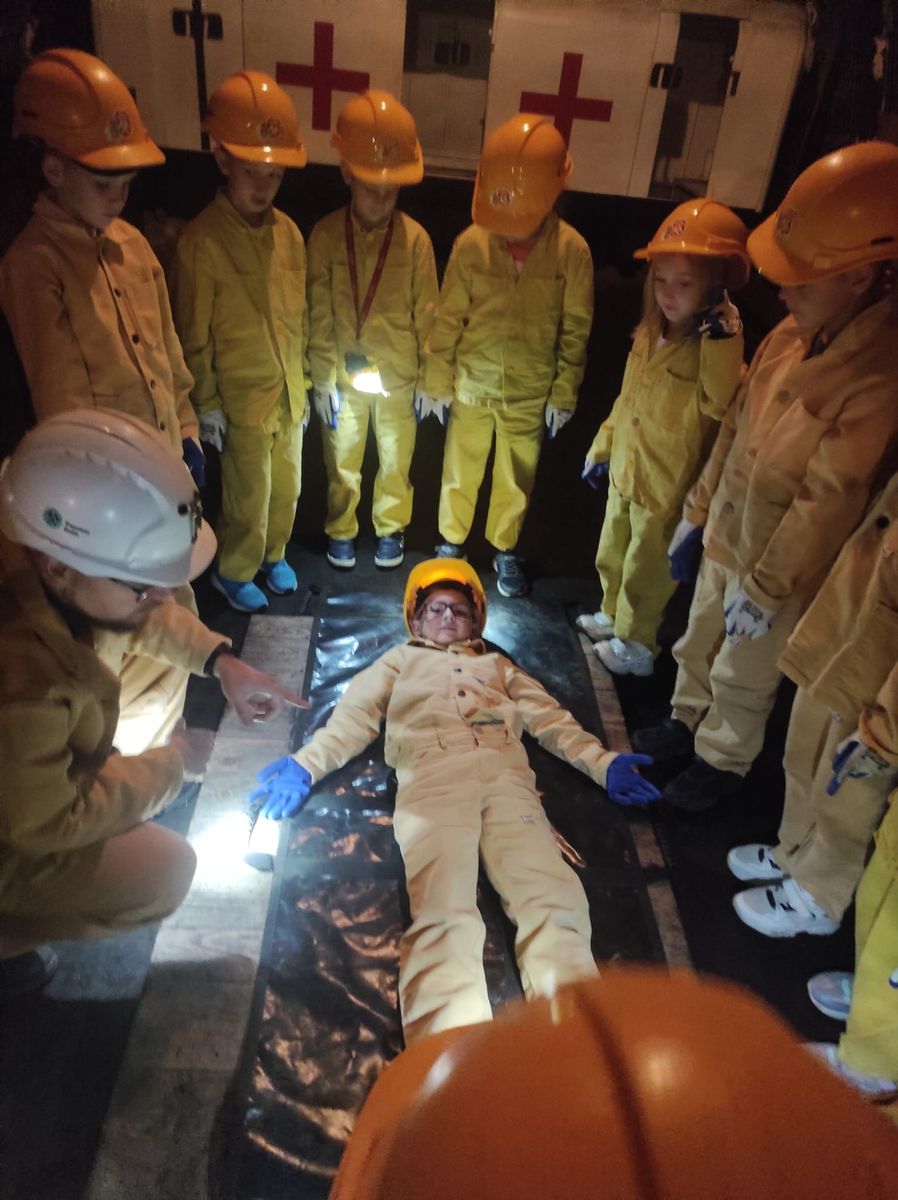 Ta wyjątkowa atrakcja w formie zabawy pozwoliła dzieciom wcielić się w rolę górników i poczuć, jak wyglądała praca pod ziemią. W specjalnych roboczych strojach, z kaskiem i lampą, uczestnicy wykonywali różnorodne zadania — urabiali węgiel kilofem, przewozili go drewnianą taczką, cięli drewno oraz brali udział w symulowanej akcji ratunkowej. Była to nie tylko doskonała zabawa, ale i okazja do integracji oraz wspólnego przeżywania emocjonujących chwil.