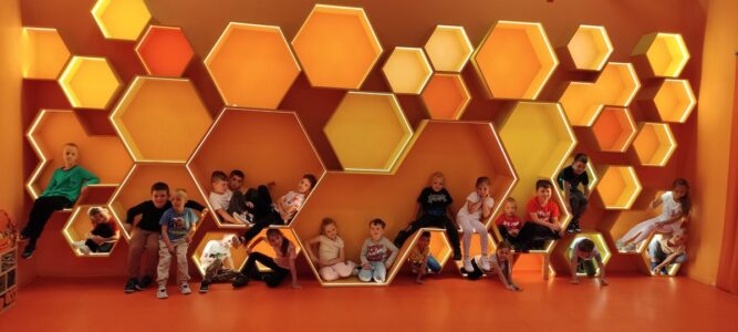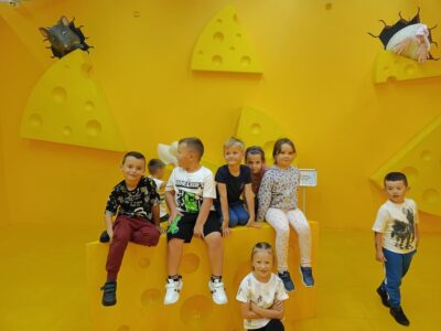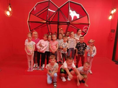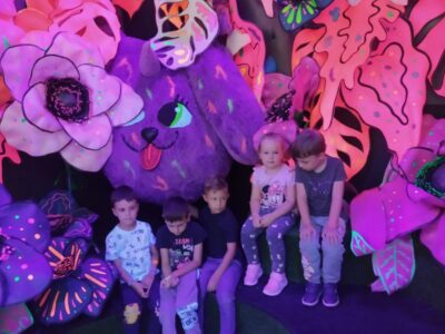 W czerwcu najstarsze przedszkolaki z naszego przedszkola, odwiedziły centrum nauki i rozrywki FUNZEUM w Gliwicach. Na początku dzieci wraz z przewodnikiem udały się w podróż po tęczy. W każdym z kolorowych pokoi oglądały i dotykały multisensoryczne eksponaty. Zwiedzając wystawę światła poznały tajniki powstawania kolorów. Za sprawą niesamowitych ekspozycji przedszkolaki przeniosły się do fluorescencyjnego lasu, kryształowej komnaty czy sali księżycowej, gdzie bez obaw mogły dotknąć słońca. Prawdziwe zaskoczenie dzieci przeżyły gdy ich zwierzątka pokolorowane na papierze ożyły w wirtualnej rzeczywistości. Po wyczerpującym zwiedzaniu połączonym z nauką na temat kolorów i światła, dzieci mogły się wyszaleć w specjalnie dla nich przygotowanej strefie FUNZONE, gdzie czekał na nie podświetlany basen z kulkami, pleciony podwieszany labirynt oraz ogromne interaktywne pianino i akwarium. Wszystkie przedszkolaki wróciły do przedszkola bardzo zadowolone i podekscytowane z planami na organizację kolejnych wyjazdów.
