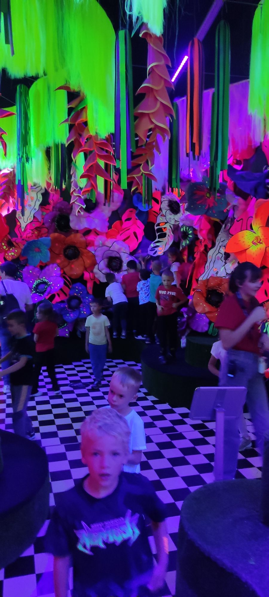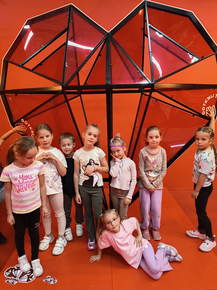 W czerwcu najstarsze przedszkolaki z naszego przedszkola, odwiedziły centrum nauki i rozrywki FUNZEUM w Gliwicach. Na początku dzieci wraz z przewodnikiem udały się w podróż po tęczy. W każdym z kolorowych pokoi oglądały i dotykały multisensoryczne eksponaty. Zwiedzając wystawę światła poznały tajniki powstawania kolorów. Za sprawą niesamowitych ekspozycji przedszkolaki przeniosły się do fluorescencyjnego lasu, kryształowej komnaty czy sali księżycowej, gdzie bez obaw mogły dotknąć słońca. Prawdziwe zaskoczenie dzieci przeżyły gdy ich zwierzątka pokolorowane na papierze ożyły w wirtualnej rzeczywistości. Po wyczerpującym zwiedzaniu połączonym z nauką na temat kolorów i światła, dzieci mogły się wyszaleć w specjalnie dla nich przygotowanej strefie FUNZONE, gdzie czekał na nie podświetlany basen z kulkami, pleciony podwieszany labirynt oraz ogromne interaktywne pianino i akwarium. Wszystkie przedszkolaki wróciły do przedszkola bardzo zadowolone i podekscytowane z planami na organizację kolejnych wyjazdów.