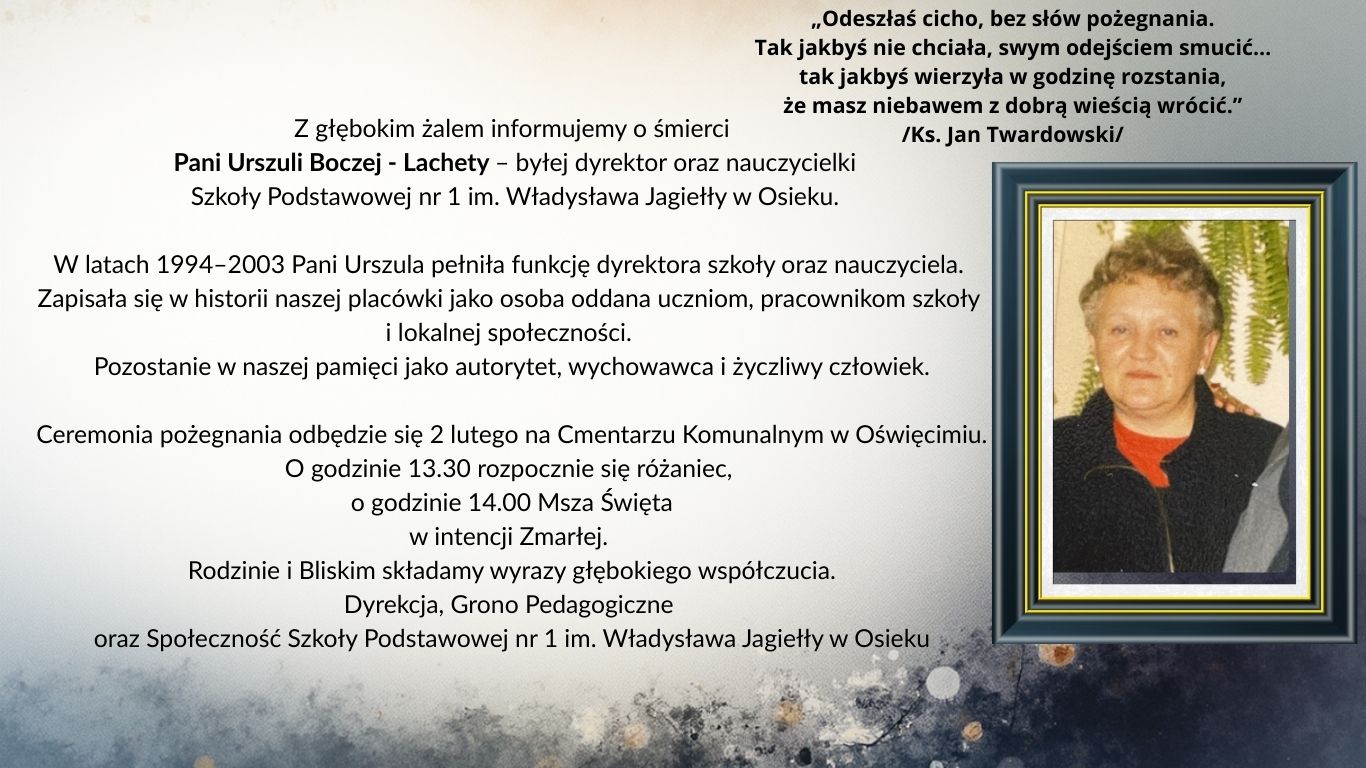 Żegnamy Panią Urszulę Boczej – Lachetę